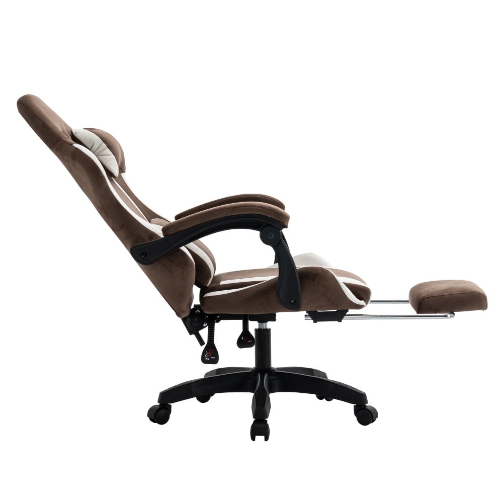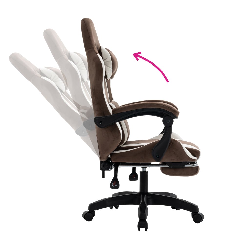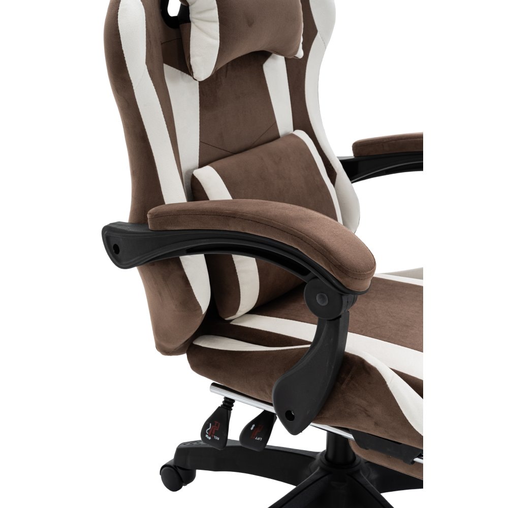 Kancelářské nebo herní křeslo HOSPO je dokonalou volbou pro ty, kteří hledají pohodlí, styl a funkčnost v jednom. Jeho ergonomický tvar, inspirovaný herními modely, zaručuje maximální oporu během dlouhého sezení při práci či zábavě. Nastavitelná opěrka hlavy a polohovatelná opěrka zad vám umožní přizpůsobit si křeslo přesně podle vašich potřeb. Čalouněné opěrky na ruce zvyšují komfort a výsuvná podnož nabízí příjemný odpočinek pro nohy. Díky univerzálním kolečkům se snadno pohybujete po měkkých i tvrdých podlahách. Stabilita je zajištěna pomocí plastové pětiramenné podstavy. Elegantní barevná kombinace hnědé a bílé látky působí moderně, zároveň však hřejivě a stylově, díky čemuž se HOSPO stane přirozenou součástí každé kanceláře, domácí pracovny i herního prostoru.