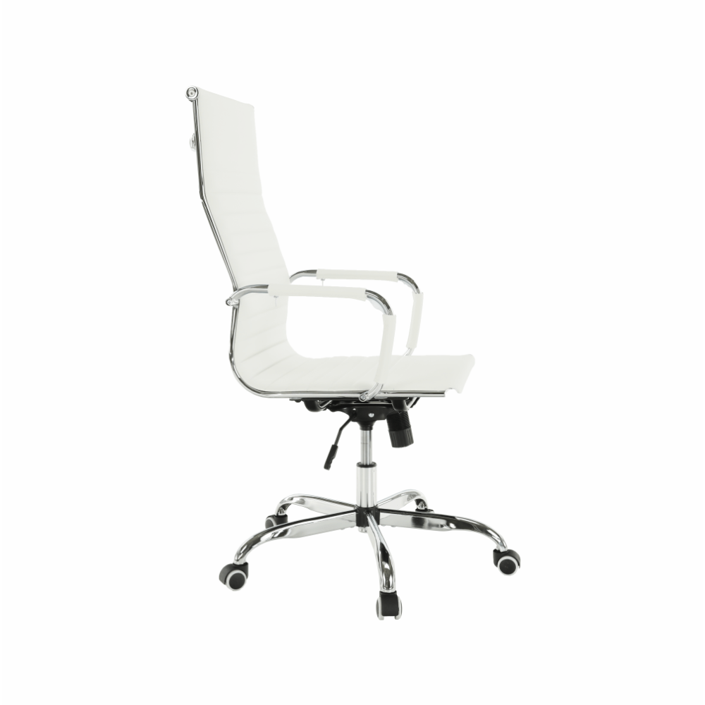 Moderní kancelářské křeslo AZURE 2 NEW Barva: bílá Materiál: ekokůže / chrom Oděruodolnost ekokůže podle testu Martindale: 100 000 oděrek Rozměry (ŠxHxV): 54,5x63x106-114 cm Výška sedu: 45-53 cm Výška od země po opěrku na ruce: 68-76 cm Hloubka sedu: 48 Nosnost: 110 kg Opěrka zad (ŠxV): 45,5x66,5…