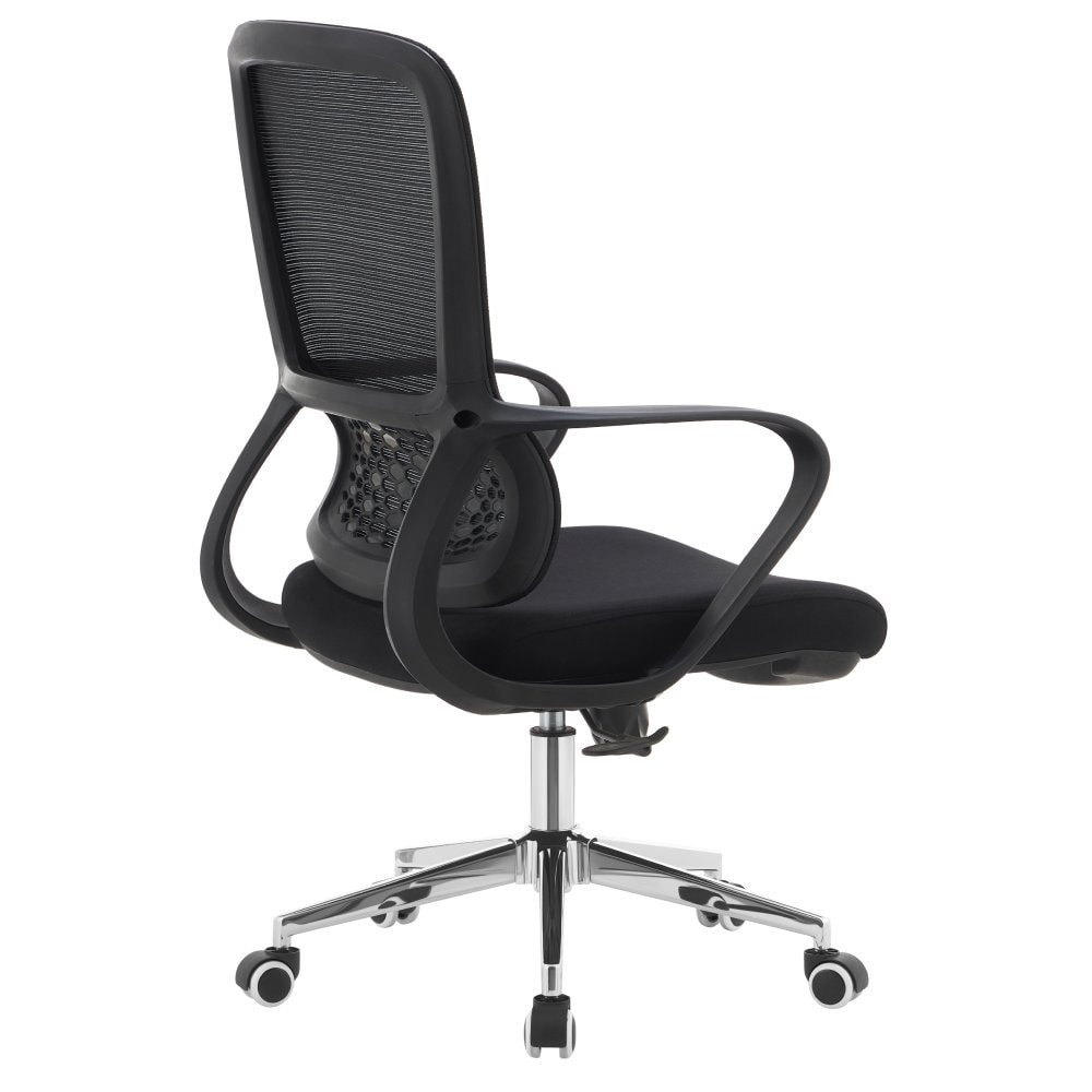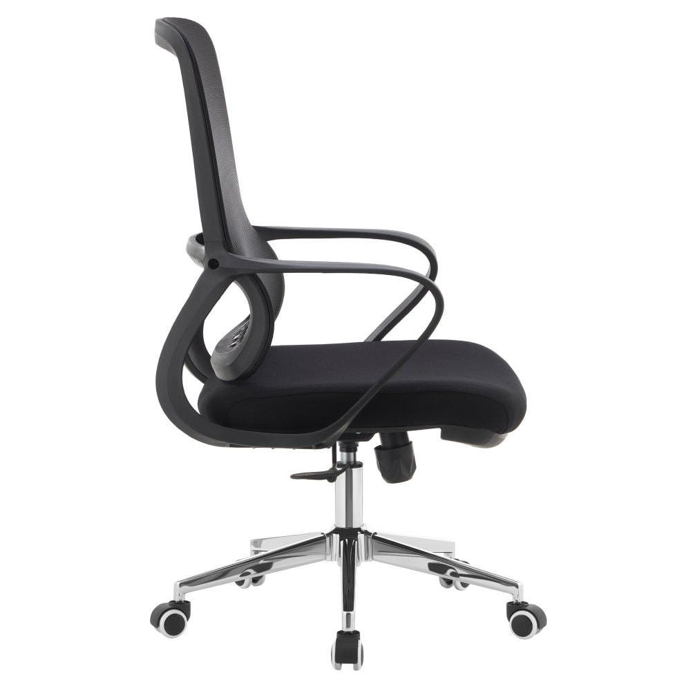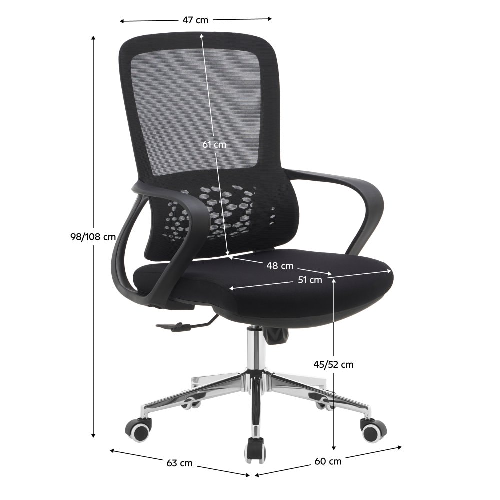 Materiál: síťovina/látka/plast/kov Oděruodolnost textilie podle testu Martindale: 80 000 oděrů Oděruodolnost síťoviny podle testu Martindale: 90 000 oděrů Barva: černá/chrom Rozměry (ŠxHxV): 60x63x98-108 cm Výška sedu: 45-52 cm Hloubka sedu: 48 cm Šířka sedu: 51 cm Šířka zádové opěrky: 47 cm Výška…