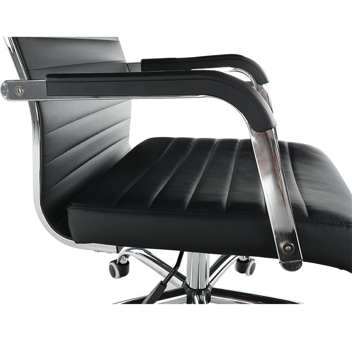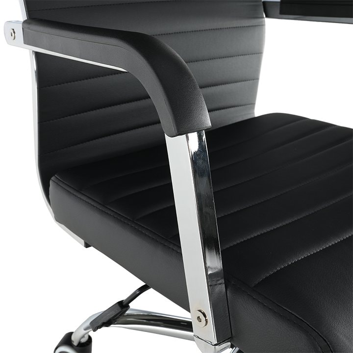 Originálním kouskem je křeslo FARAN. Vyrobeno z kvalitní černé ekokůže a kovu v odstínu chrom. Výhodou a velkým plusem tohoto křesla jsou také univerzální kolečka, která jsou vhodná pro měkké i tvrdé podlahy. Kancelářské křeslo je dodáváno v demontu.