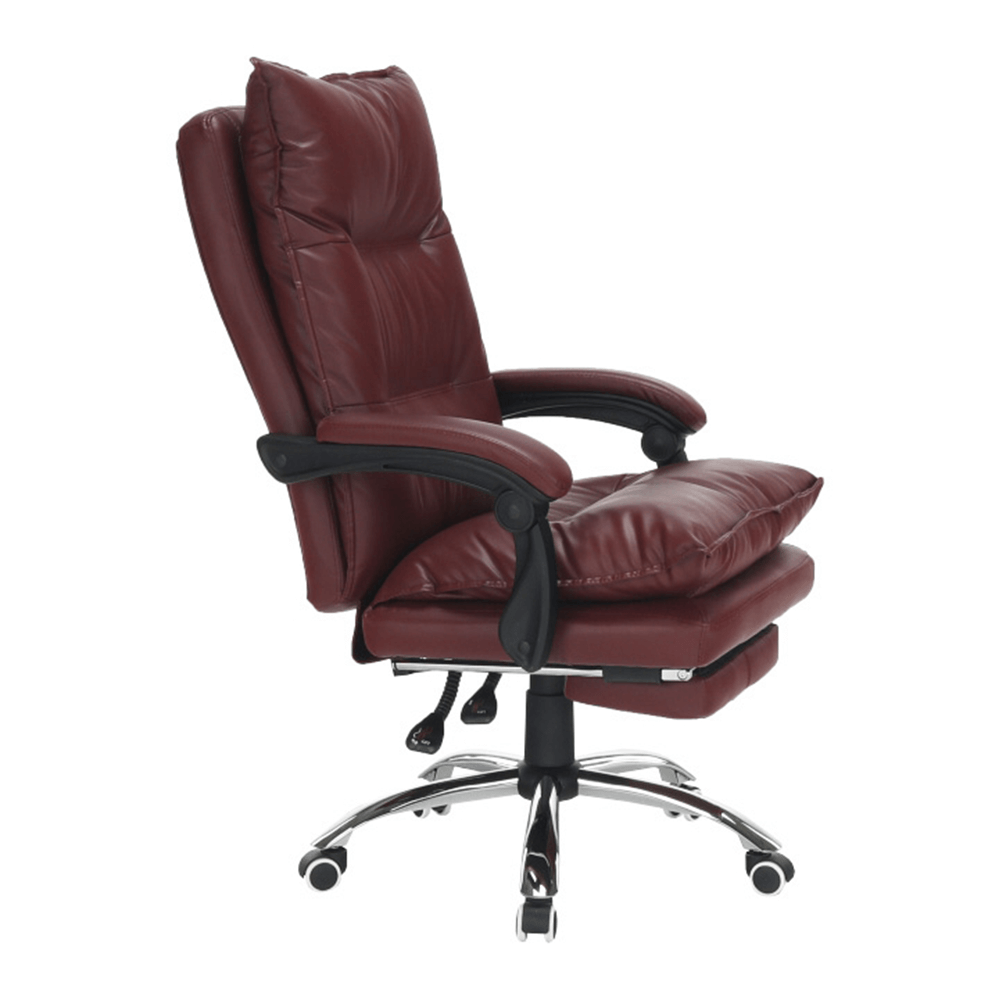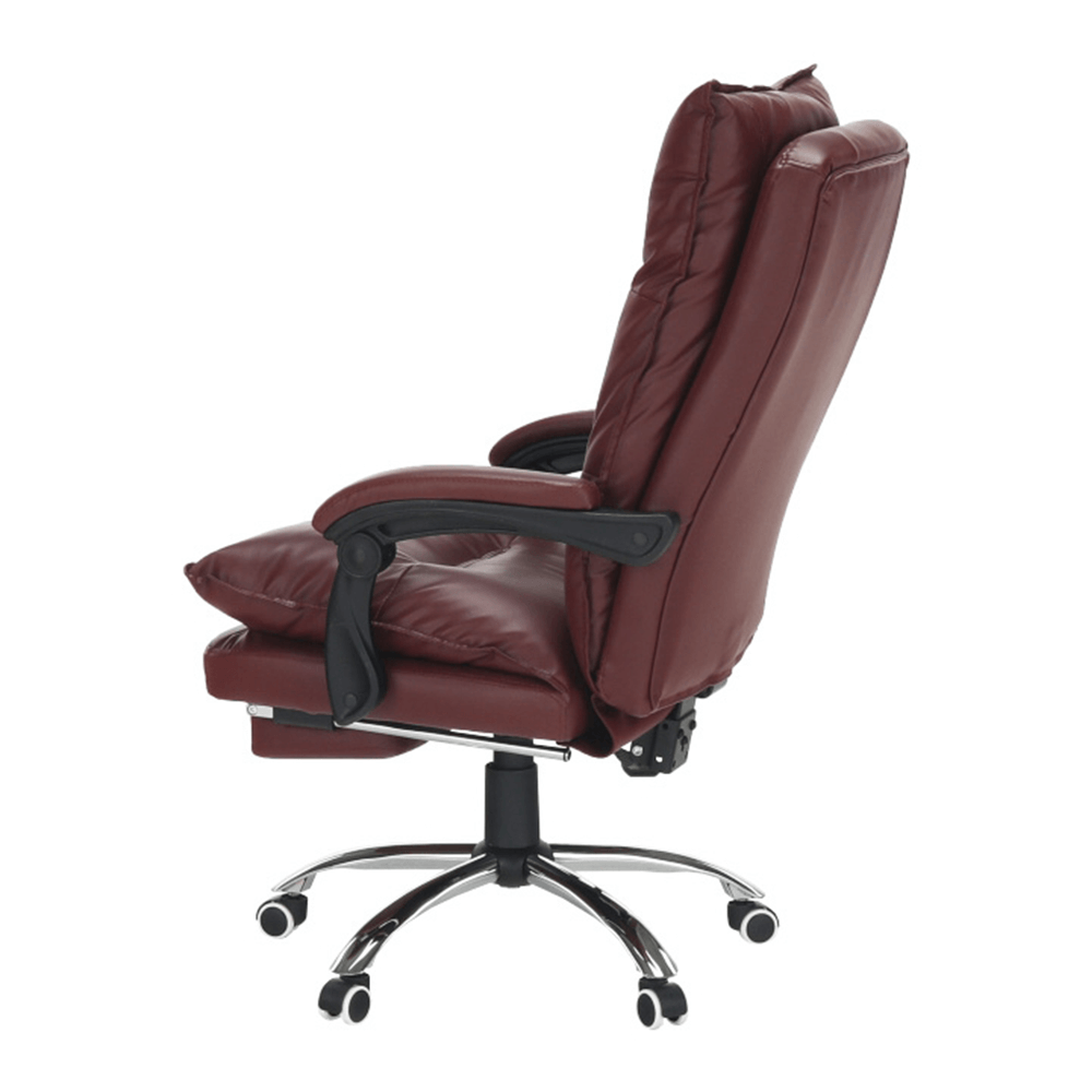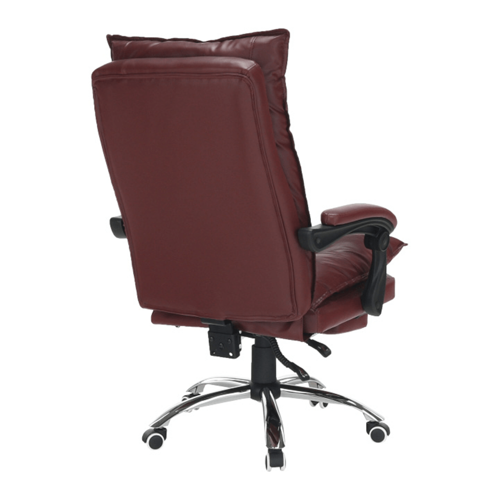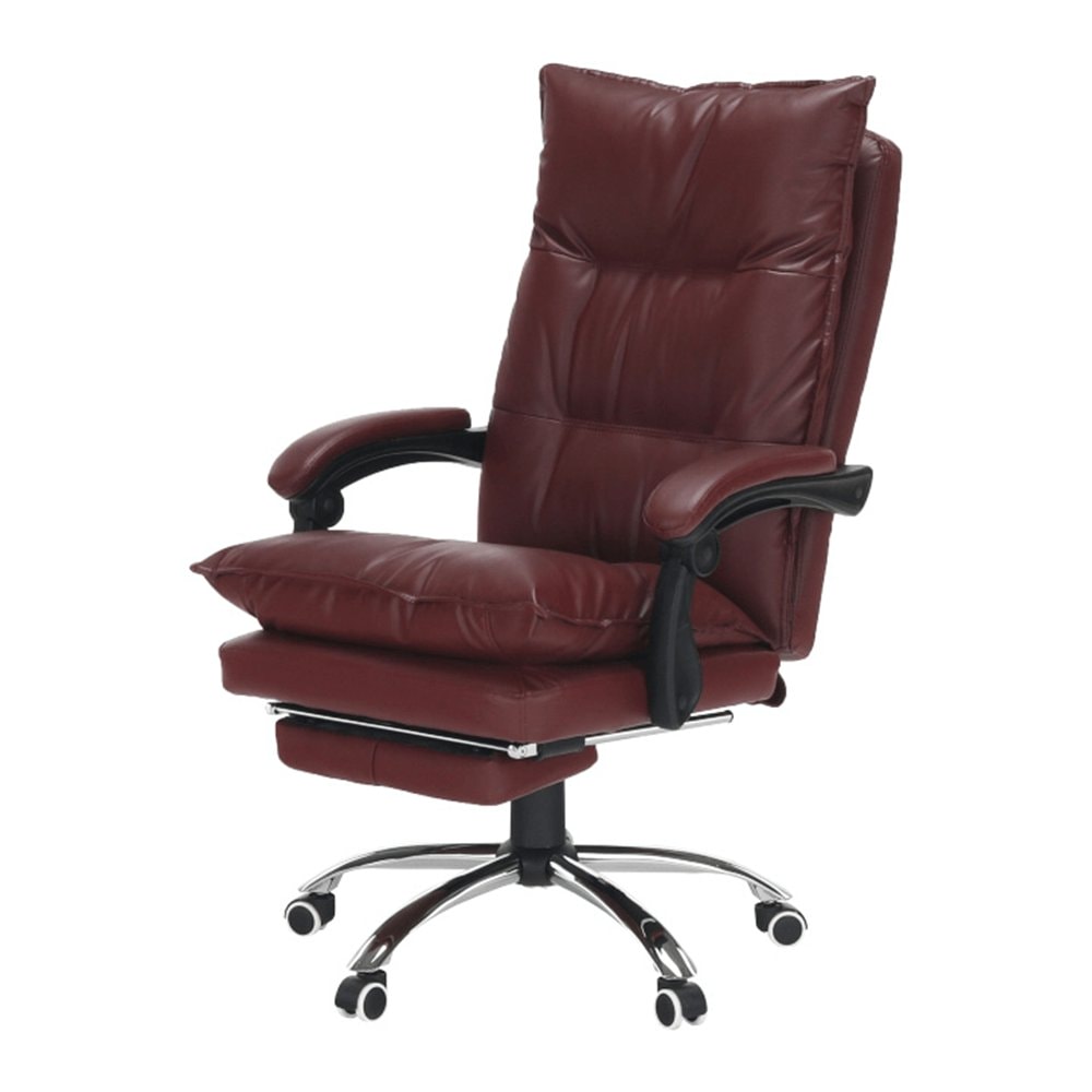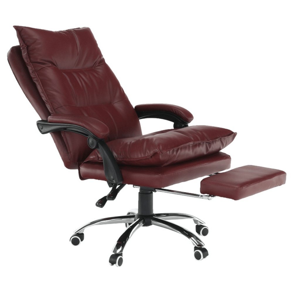 Křeslo DRAke je čalouněno ekokůží v bordó barvě. Opěradlo i sedátko jsou vybaveny ergonomicky tvarovanými polštáři, které násobí pohodlí při práci. Výšku sedu si umíte regulovat pomocí jednoduchého mechanismu umístěného pod sedadlem. Extra bonus jsou čalouněné opěrky na ruce. Potřebujete pauzu? Skloňte opěradlo do relaxační polohy, vysuňte podnož, vyložte si nohy a dopřejte si pár minut relaxu. Podnož stačí vysunout, abyste si zvýšili pocit z komfortu, který křeslo přináší. Pokud ji zrovna nepotřebujete, zasuňte ji pod sedadlo. Podnož nezabírá místo a nepřekáží, ale vždy je připravena posloužit vám. Univerzální kolečka jsou vhodná pro měkké i tvrdé podlahy. DRAKE, to je týpek, který by měl stát po vašem boku.