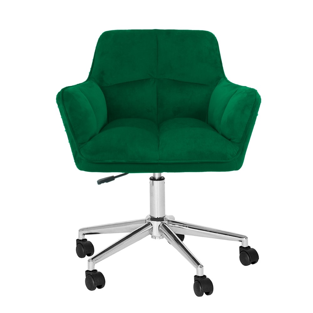 Materiál: látka Velvet/kov Oděruodolnost textilie podle testu Martindale: 85 000 oděrů Barva: smaragdová/chrom Rozměry (ŠxHxV): 63x63x77/86 cm Nastavitelná výška sedu : 44/56 cm Hloubka sedu:43 cm Šířka sedu:45 cm Výška zádové opěrky:38 cm Šířka zádové opěrky:47 cm Maximální nosnost: 100 kg Nastavení výšky sedu Otočné sedátko Na kolečkách Dodáváno v demontu