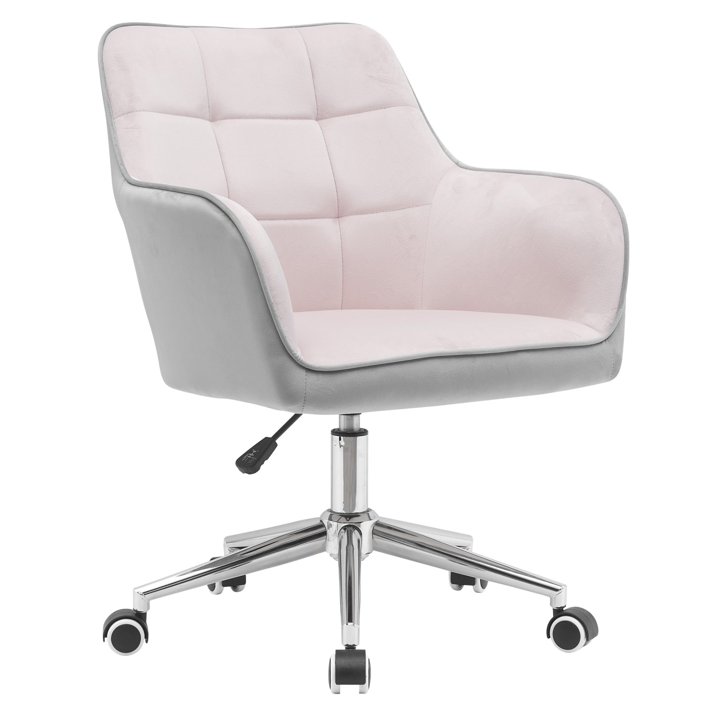 Kombinaci růžové Velvet látky s šedou doplňuje chromová podstava. Působí romanticky a krásně dotvoří styl ve vaší pracovně. Obsahuje robustní chromovou podnož s univerzálními kolečky, která jsou vhodné na měkké i tvrdé podlahy. Také usnadňují pohyb a manipulaci s křeslem v prostoru. FELTON NEW disponuje funkcí výškového polohování, což pocit komfortního sezení přímo znásobuje. Inspirujte se naším křeslem a dodejte šarm své kanceláři.