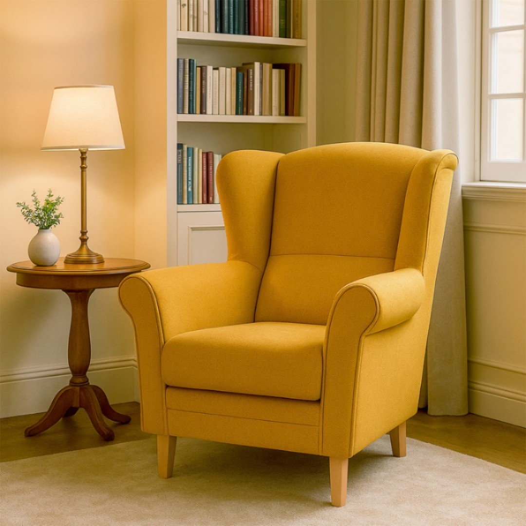 Pohodlné křeslo Klipos - ušák, je čalouněno látkou . Materiál byl použit velmi kvalitní a tak
