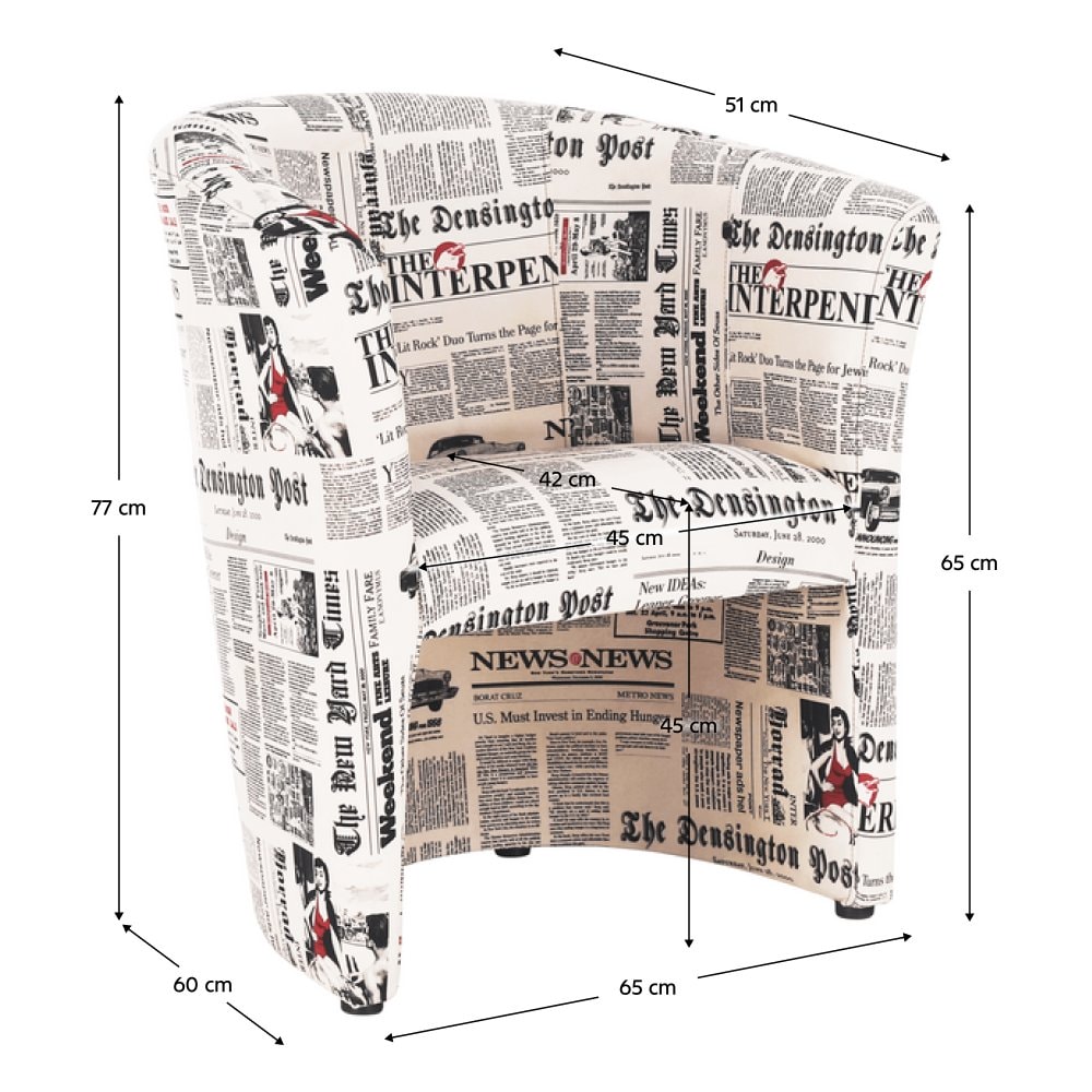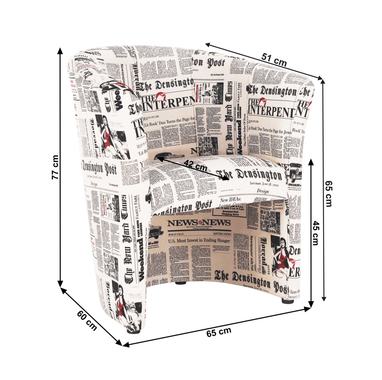 Křeslo CUBA Materiál: látka šenil Oděruodolnost textilie podle testu Martindale: 55 000 oděrek Barva: vzor noviny Rozměry (ŠxHxV): 65x60x77 cm Nosnost: 120 kg Možnost objednání ve vyobrazených barevných provedeních látek: Savana, Kronos, Soro, Lava v cene 2.650 Kč, v látce mikrofáza za cenu…