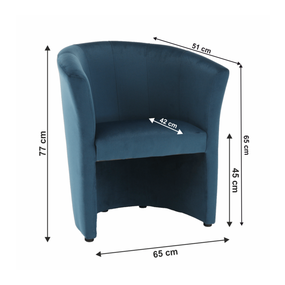 Klubové křeslo, modrá látka, CUBA