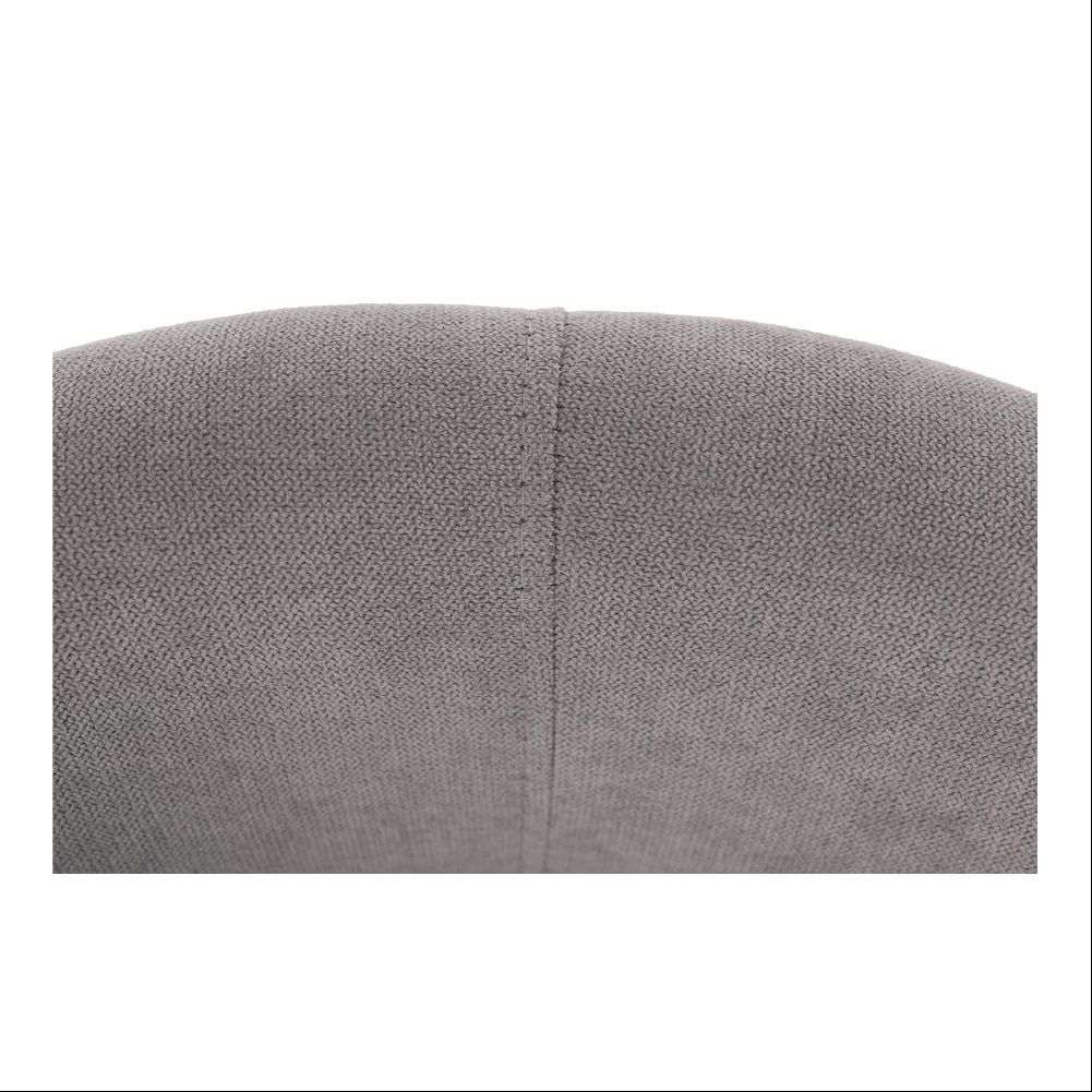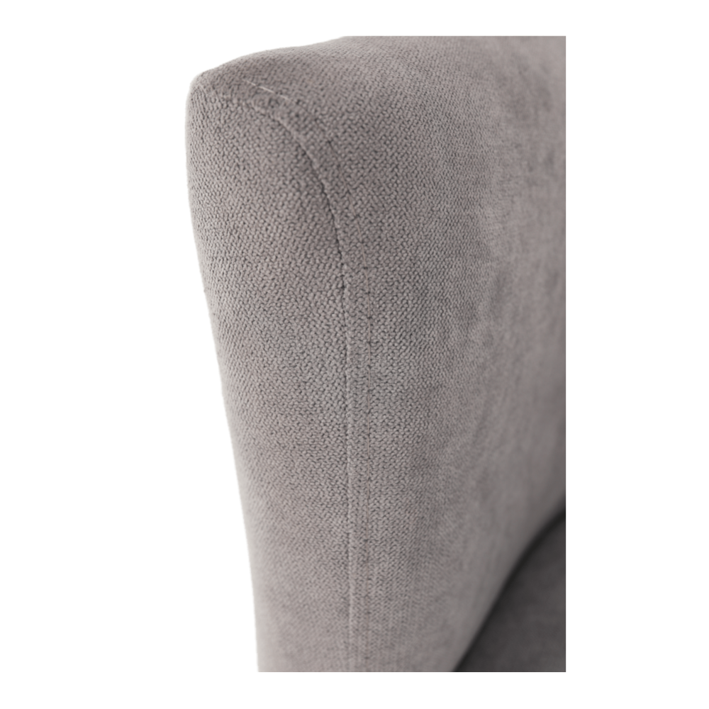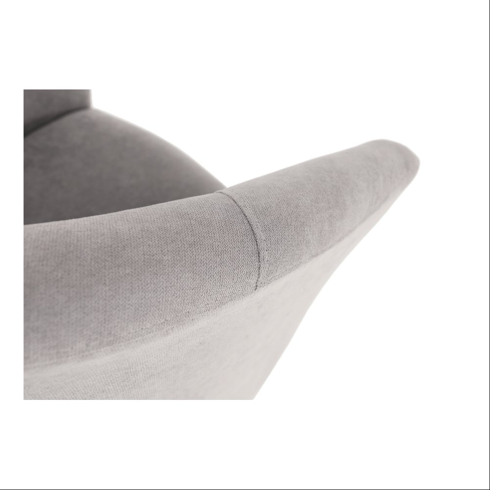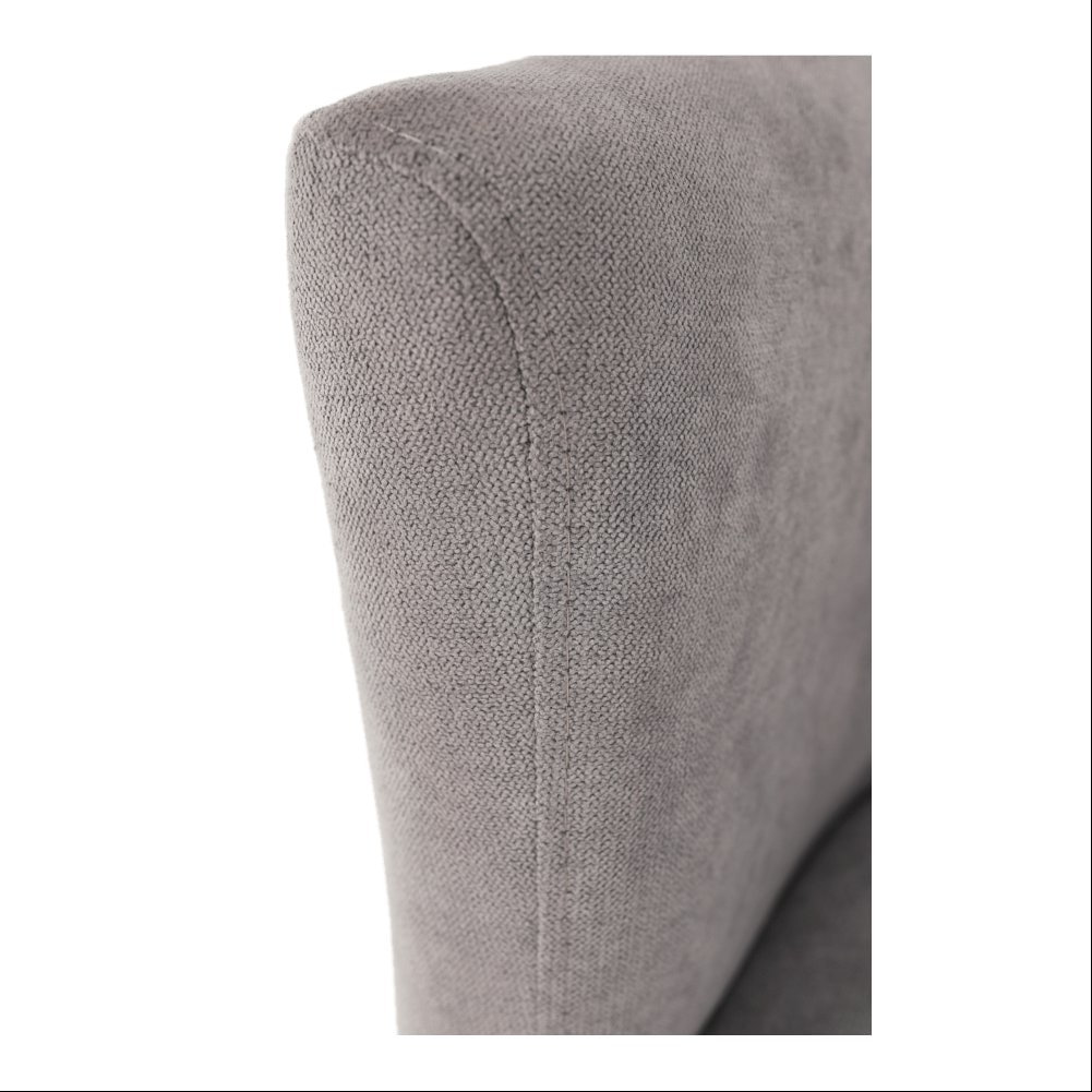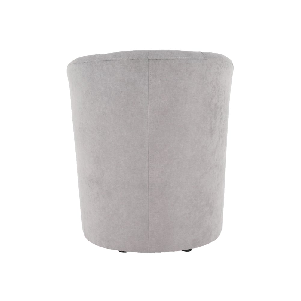 Křeslo i taburet je celočalouněné látkou v šedé barvě.