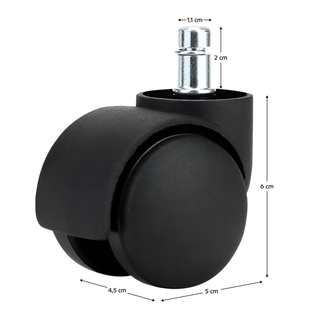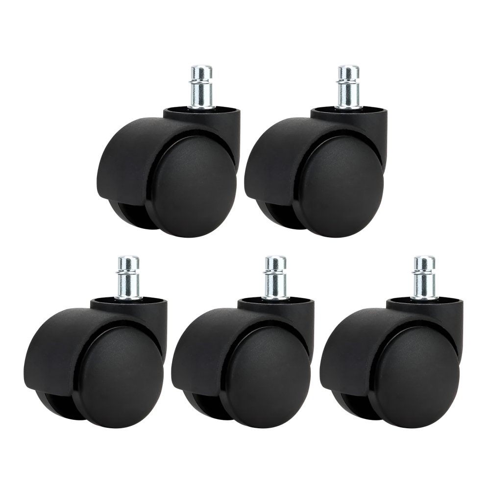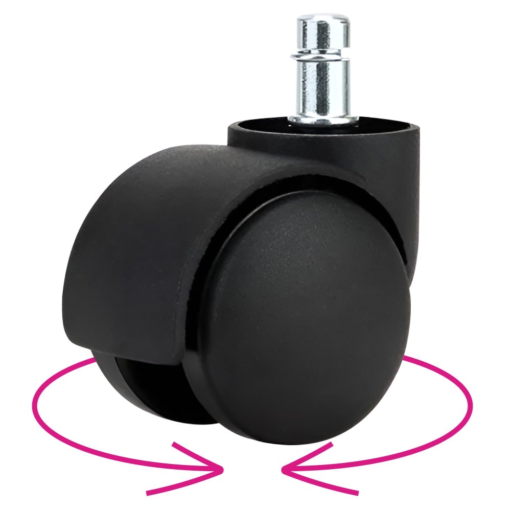 Náhradní kolečka jsou ideálním řešením pro výměnu opotřebovaných koleček vaší kancelářské židle. Díky nim bude pohyb židle hladký a bezproblémový. Balení obsahuje 5 kusů z černého nylonového plastu, které se otáčejí o 360° a jsou vhodné na měkké podlahy. KOLECKO TYP 1 zároveň ochrání vaši podlahu a zvýší pohodlí při sezení.