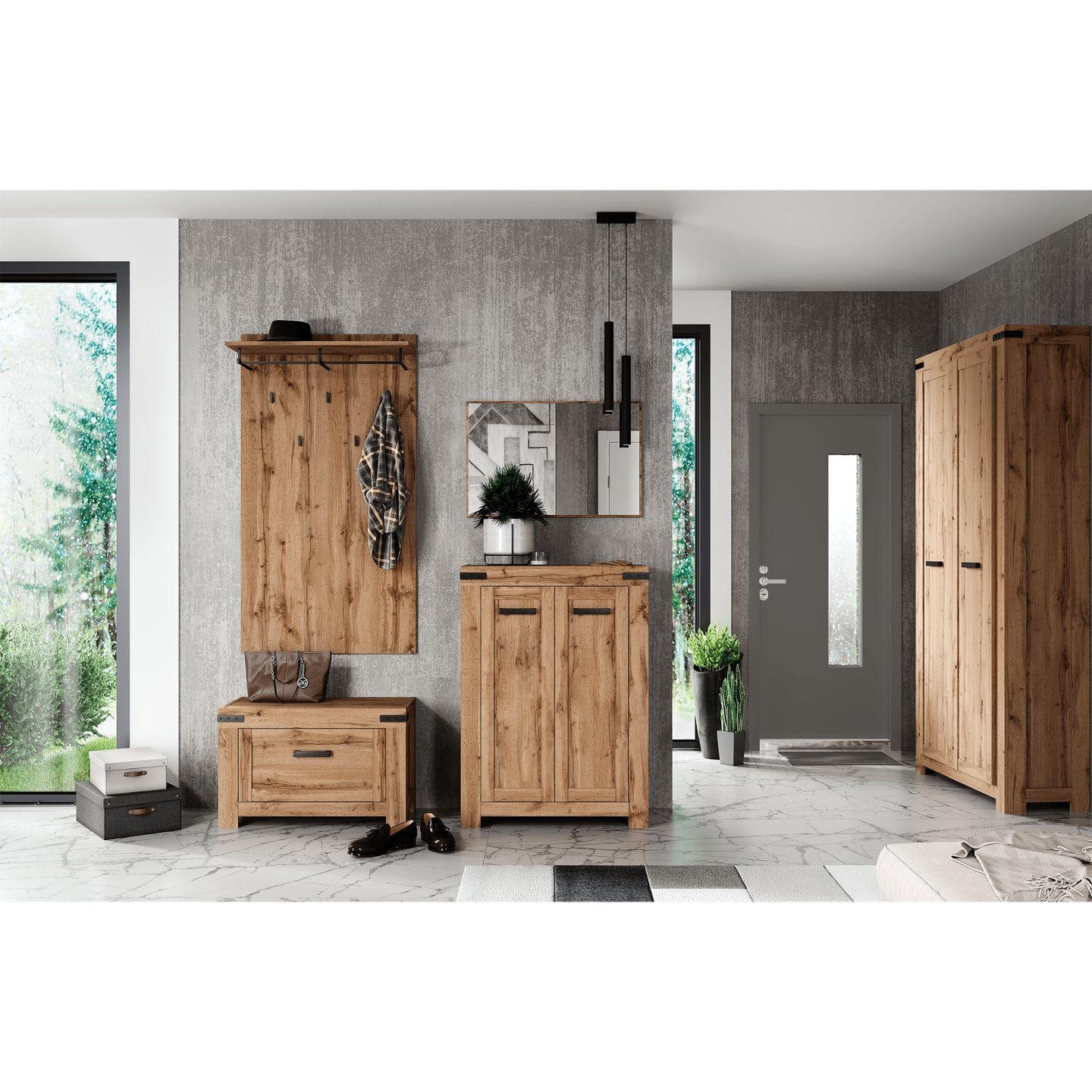 Nabízí jednotlivé komponenty, které zaujmou nejednoho návštěvníka domácnosti. Je designově elegantní a stylový. Vyroben je z laminované dřevotřísky, dvířka jsou z MDF. Barevné provedení tvoří odstín dub wotan. Jeho design dotváří plastový dekor v podobě úchytek. Sektor obsahuje různé druhy nábytku. Je jen na vás, který si vyberete. Do obývacího pokoje, ložnice, studentského pokoje nebo do jídelny.