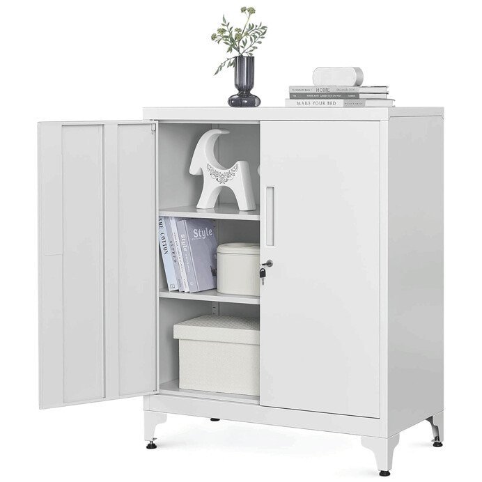 Díky svému jednoduchému designu a neutrální bílé barvě se skříňka hodí do kanceláří i domácích prostor.