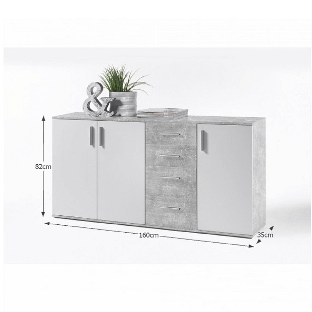 Komoda POPPY 3 Materiál: DTD laminovaná Barevné provedení: bílá / beton Rozměry (ŠxHxV): 160x35x82 cm Dodávána v demontu.