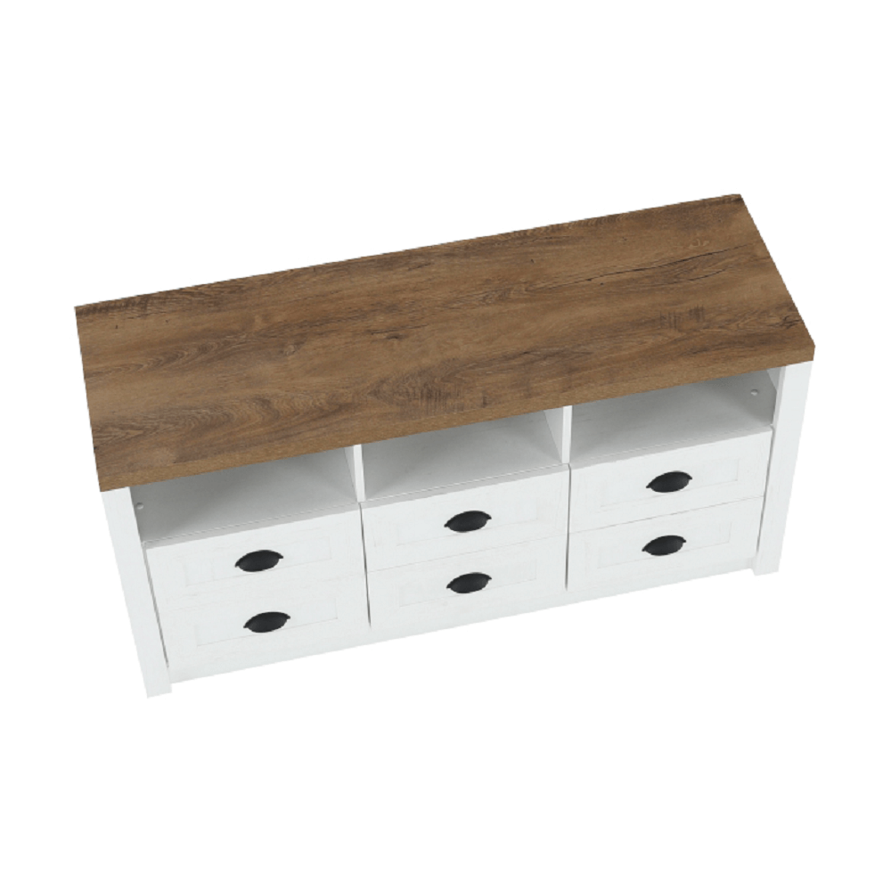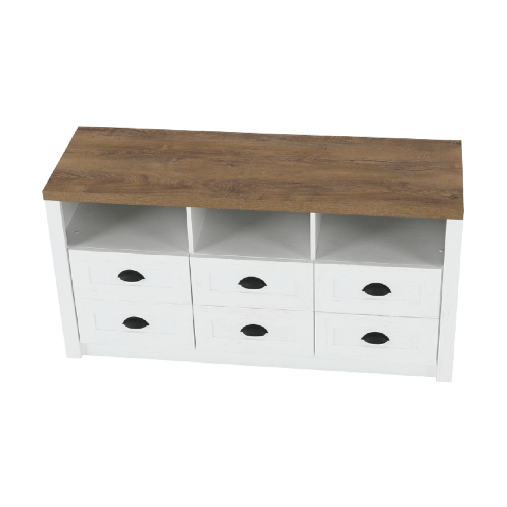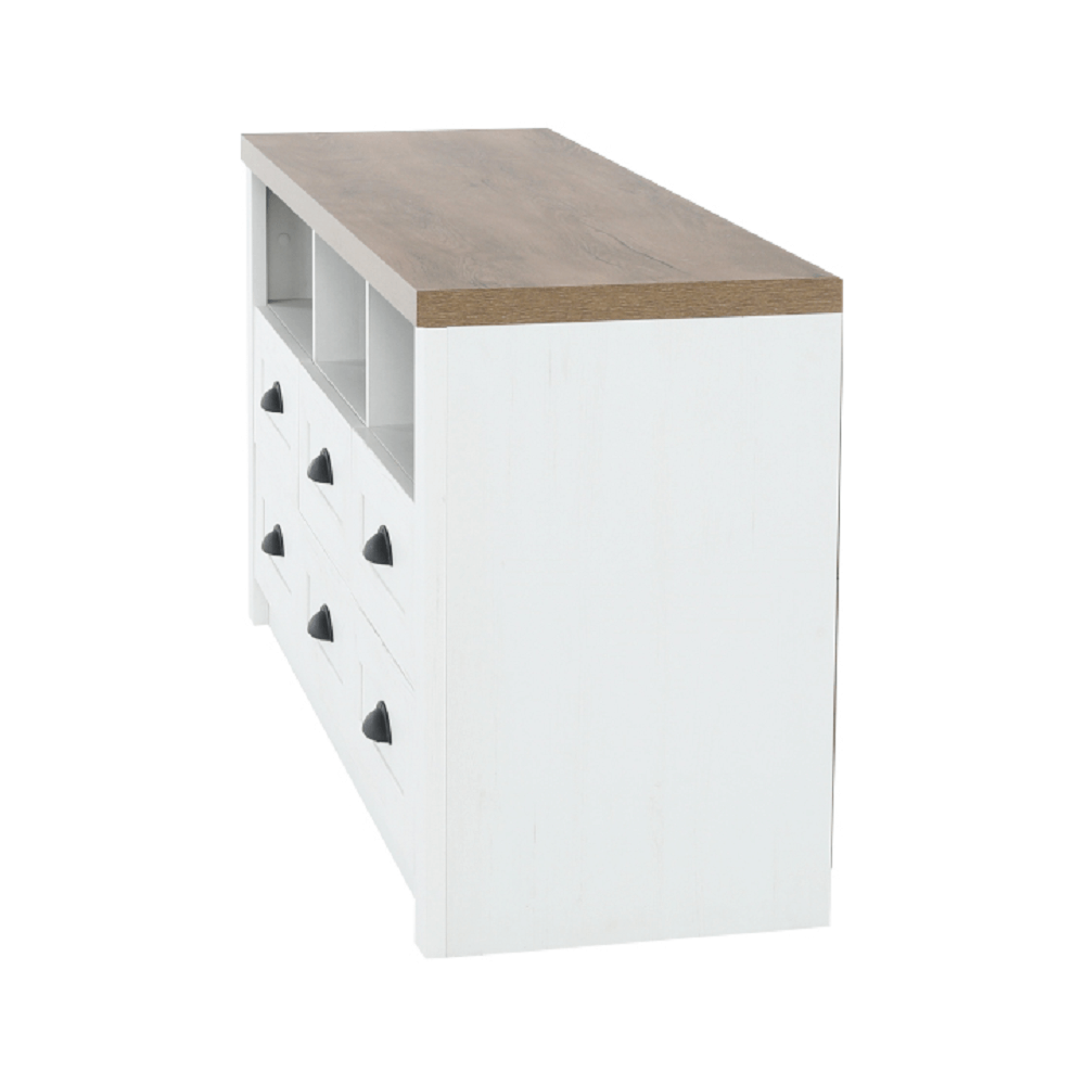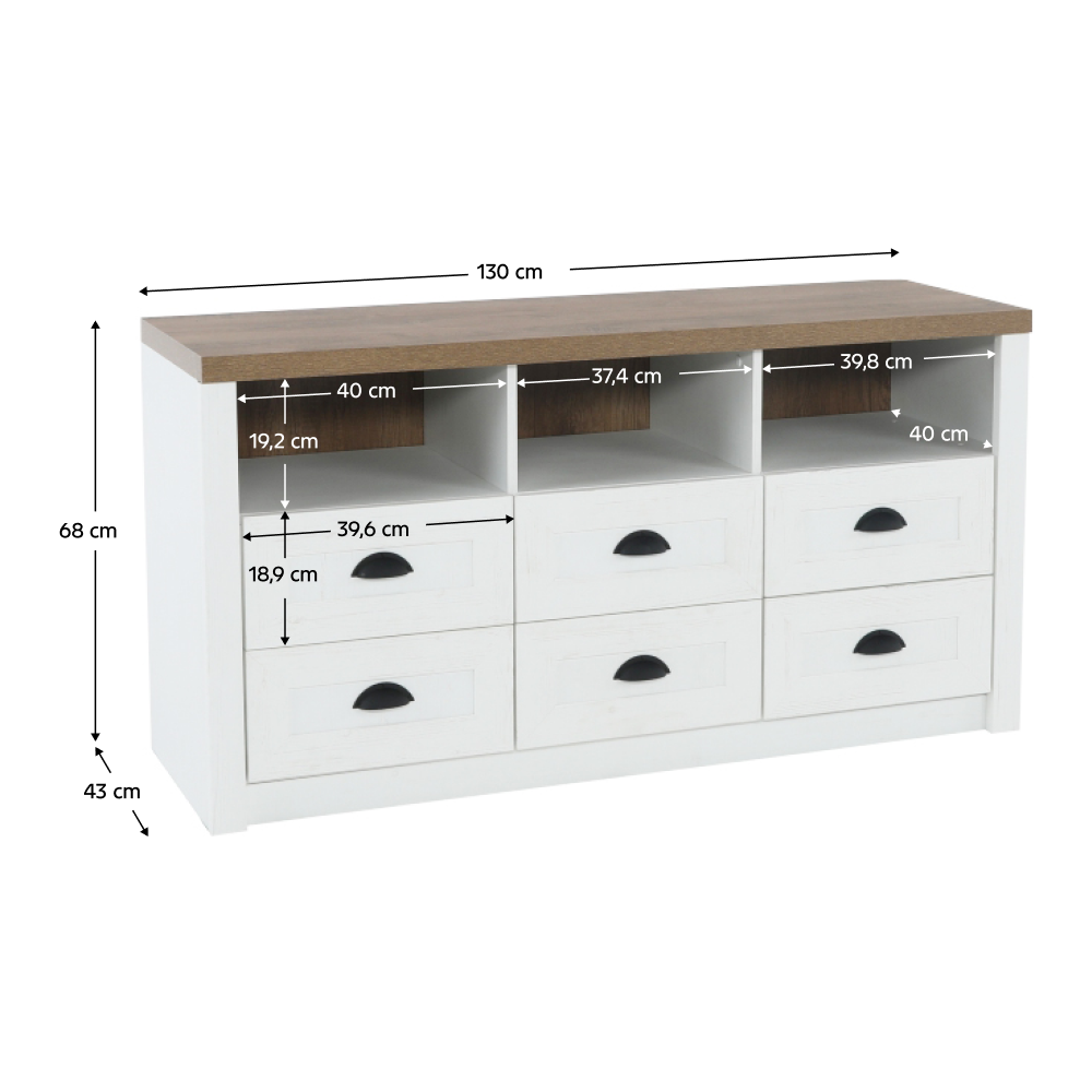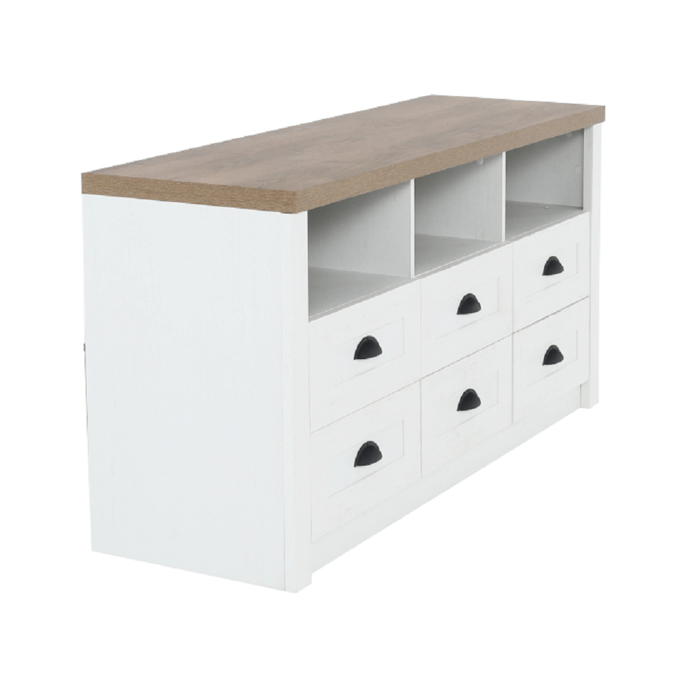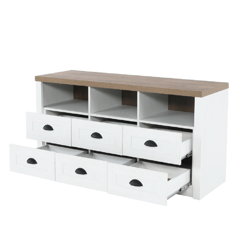 Komoda Provance K6S poskytuje uzavřený a otevřený úložný prostor. Má policovou část a šest šuplíků.