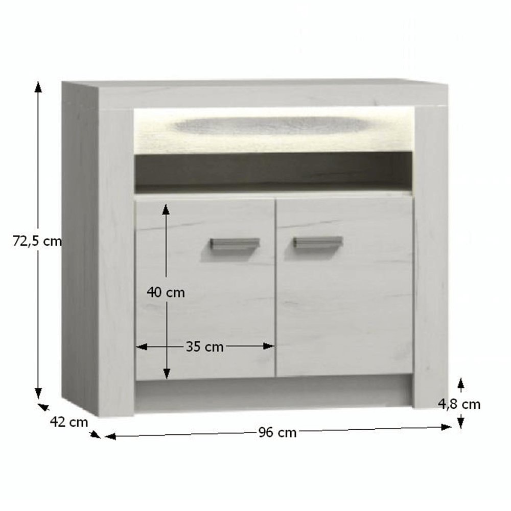 Komoda 10 z luxusního sektorového nábytku Korpus hrubý až 48 mm, Tloušťka materiálu zbývající části: 16 mm, úchytky kovové Materiál DTD laminovaná, ABS hrany, barevné provedení: jasan bílý, Rozměry ŠxHxV: 96x42x72,5 cm. Možnost dokoupení LED osvětlení v ceně 890 Kč. Dodávané v demontu.