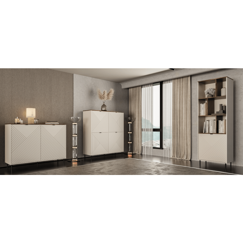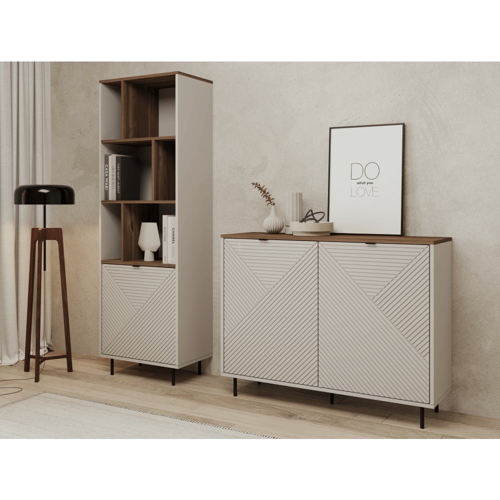 Dopřejte svému obývacímu pokoji nový rozměr s obývacím sektorem EYCO, který přináší nejen moderní design, ale i maximální flexibilitu.Tento nábytek je ideální pro každého, kdo hledá stylové a praktické řešení pro úložný prostor. Korpus je vyroben z laminované DTD, dvířka jsou z MDF a samozřejmostí jsou ABS hrany, které chrání hrany nábytku před poškrábáním a mechanickým poškozením. Barevná kombinace kašmír a dub castello působí jemně a moderně, zatímco černé kovové nohy a černé úchyty dodávají nábytku kontrast a eleganci. Jedním z největších přínosů sektorového systému EYCO je jeho variabilita. Komponenty se objednávají jednotlivě, což vám dává možnost vyskládat si vlastní sestavu podle potřeb a prostoru.