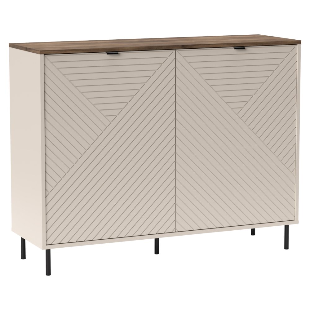 Dvoudveřová komoda EYCO 2D nabízí svůj úložný prostor v podobě dvou skříněk. Za dvířky se nachází police, která předěluje úložný prostor.