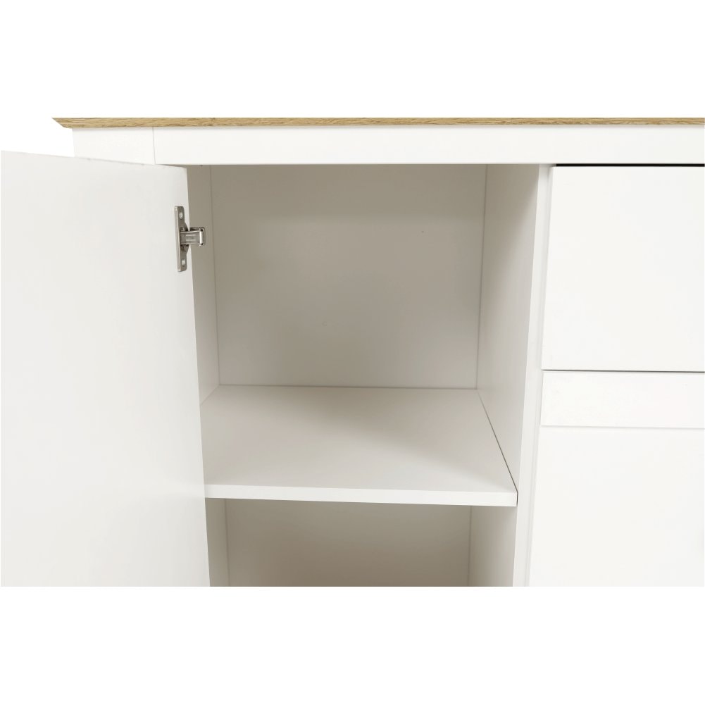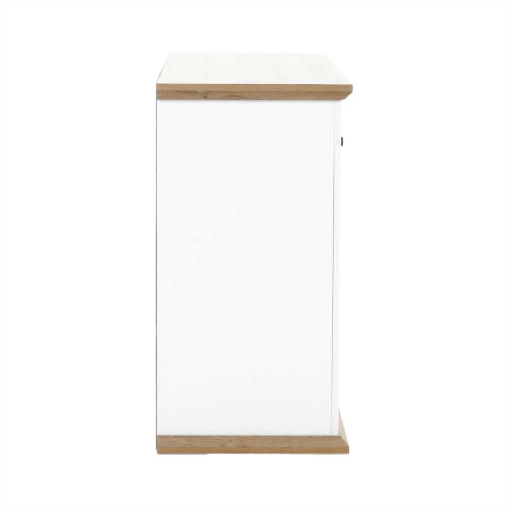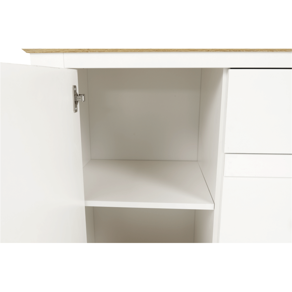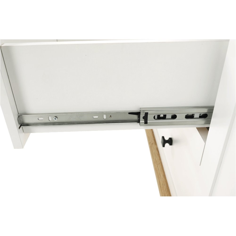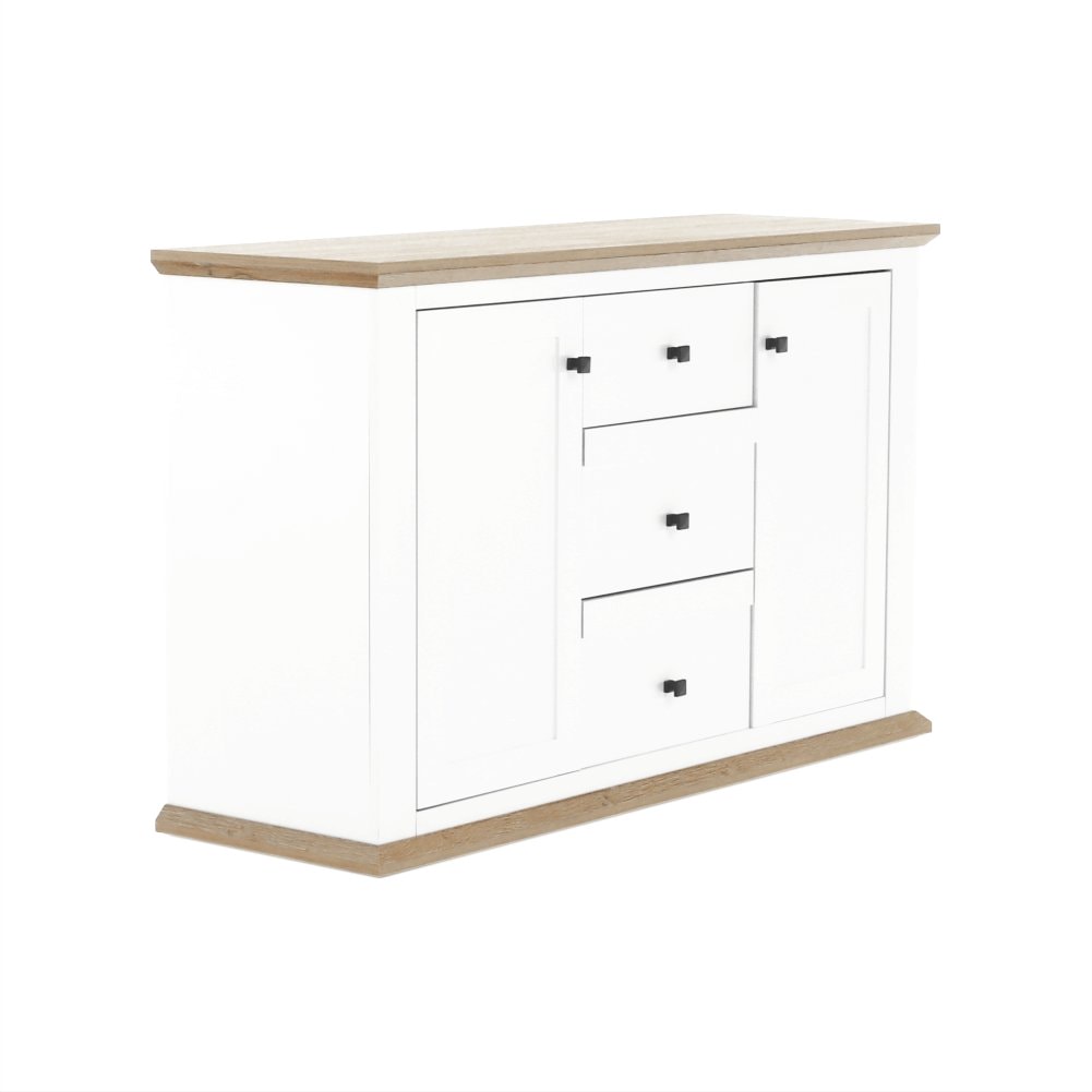 Materiál: DTD laminovaná / ABS hrany Barva: bílá / dub grand Rozměry (ŠxHxV): 140x45x87 cm Tloušťka materiálu: 40 mm dvoudveřová dvě skříňky tři šuplíky S úchytkami S 3D efektem elegantní V provensálském stylu kovové úchytky Dodávané v demontu