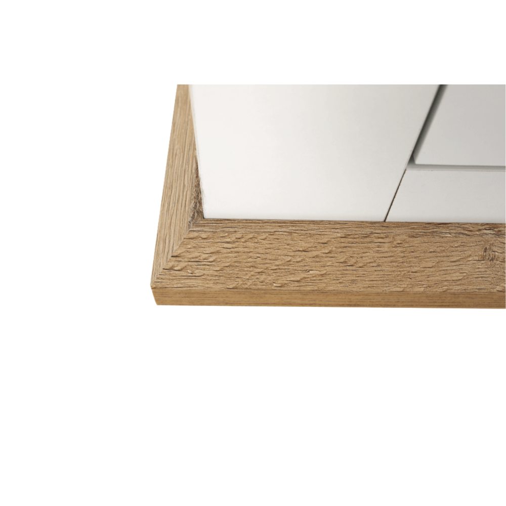 Na moderní vlně přichází sektorová sestava LEON. Přináší množství komponent, se kterými zařídíte obývací pokoj či ložnici. Vyrobena je z laminované dřevotřísky s ABS hranami s tloušťkou až 40 mm. Originální ji dělá i barevné provedení bílá / dub grand s 3D efektem.
