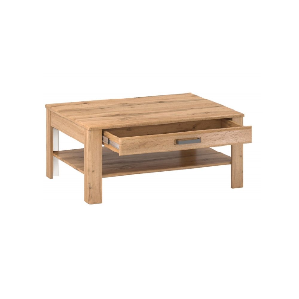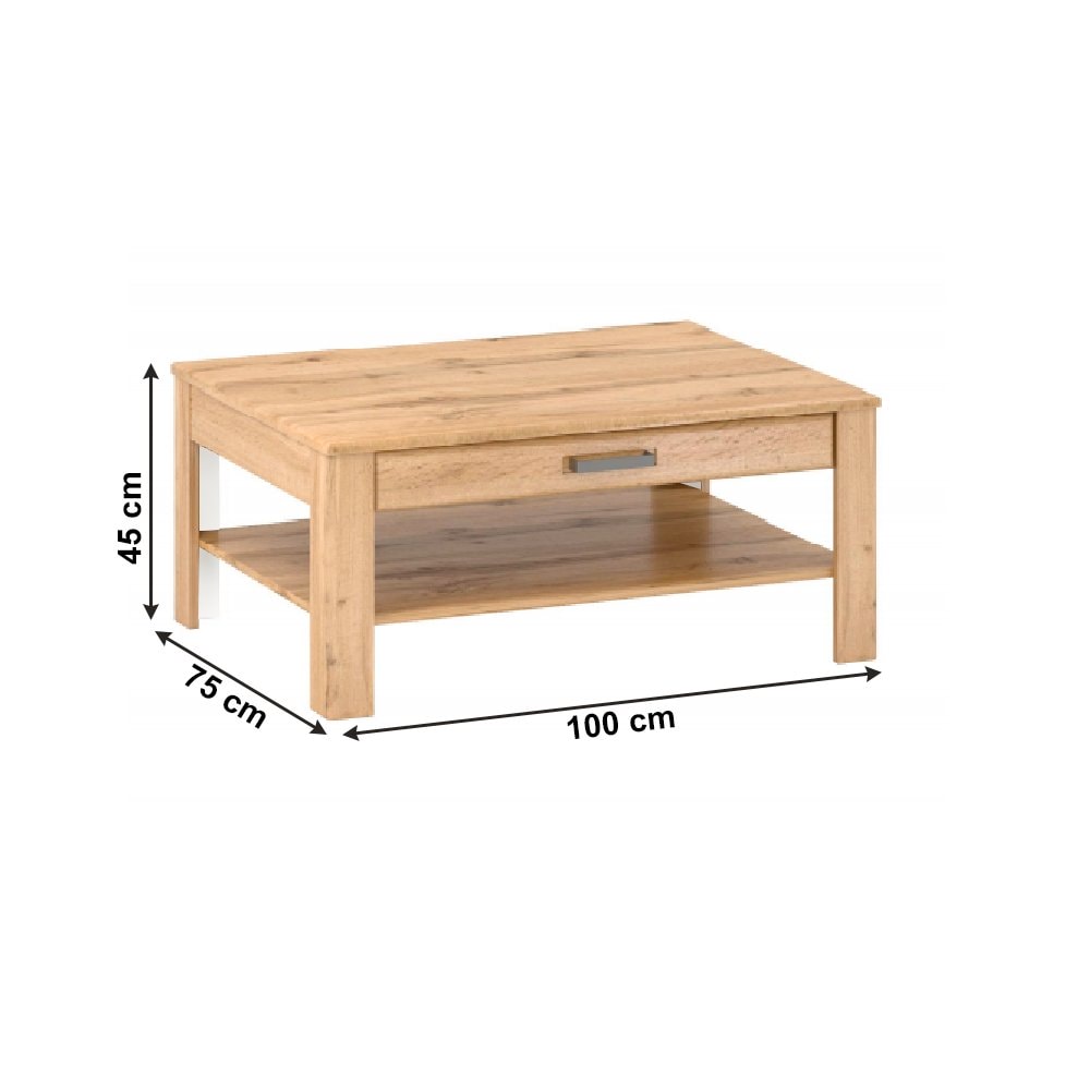 Konferenční stolek z kolekce Pusan je zajímavý a vkusný. Oživí nejeden obývací prostor. Stolek vyniká svým odkládacím prostorem a praktickým šuplíkem, který ukryje i ty nejtajnější poklady. Pro lepší manipulaci šuplík obsahuje kovovou úchytku šedé barvy.