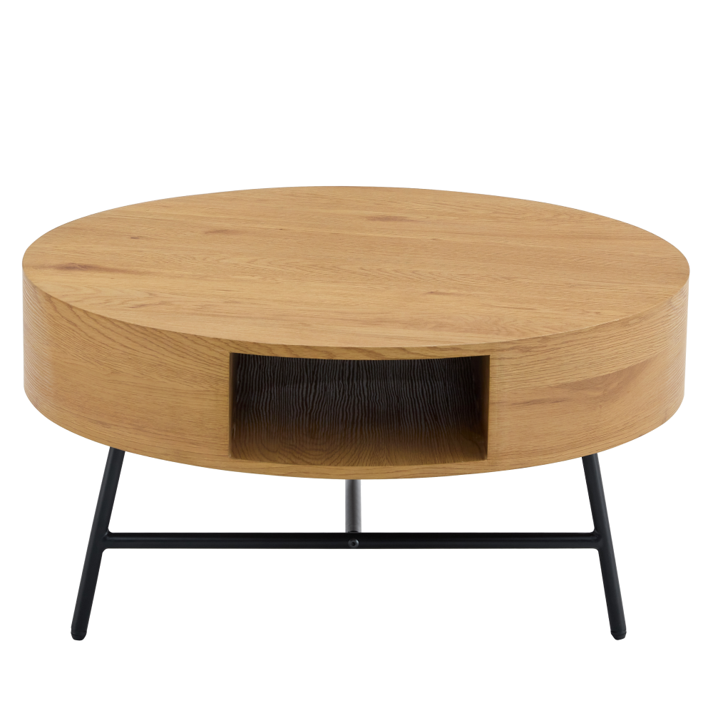 Díky optimálnímu průměru a kulaté vrchní desce se stane ideálním pomocníkem při pití kávy s přáteli nebo na odložení oblíbené knihy, časopisů či dálkového ovladače. Vyroben je z kombinace foliované MDF v odstínu dub a černé kovové konstrukce. Disponuje funkční a praktickou policí pod deskou, díky které naleznete místo pro různé drobnosti. TARMON skvěle poslouží v obývacím pokoji zařízeném v moderním, industriálním nebo minimalistickém stylu.
