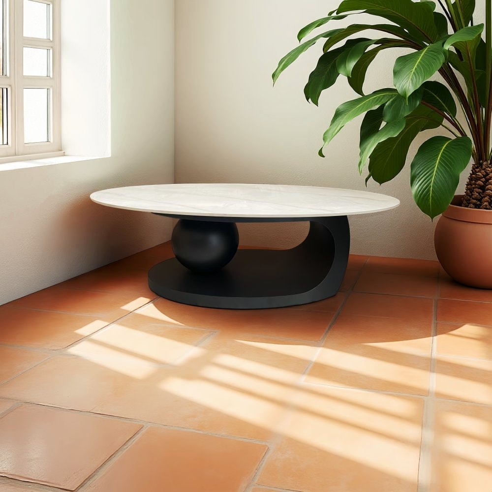 Materiál: břidlice/ocel Barva: bílá imitace mramor/černá Rozměry stolku (ŠxHxV): 130x70x41 cm Tloušťka plátu stolu: 1,2 cm Tloušťka oceli: 0,1 cm Elipsovitá vrchní deska Originální kousek Moderní a stylový Nadčasový design Nosnost: 100 kg Dodáváno v demontu