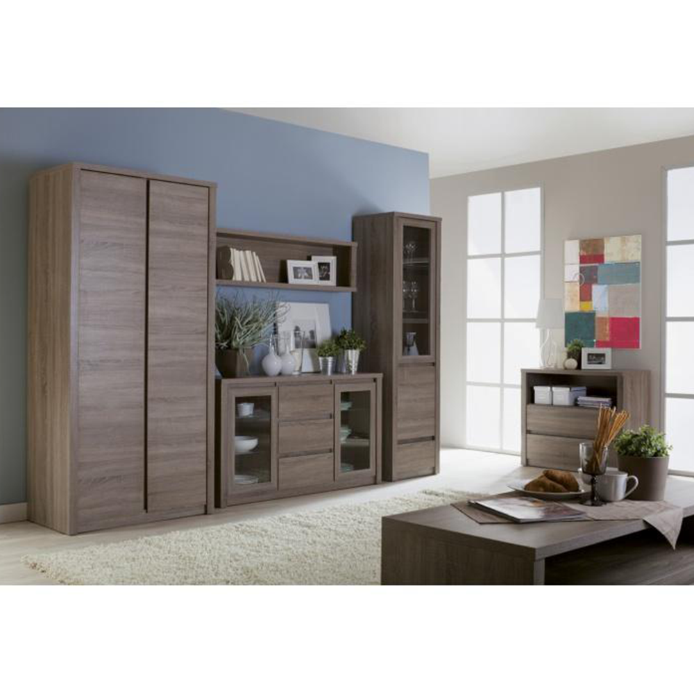 Je vhodný zejména na zařízení obývacích pokojů, jídelen, ložnic nebo pracoven. Základ materiálu ze kterého je nábytek vyrobený tvoří DTD laminovaná. Cizí mu nejsou ani ABS hrany , které se používají na ukončení nábytkového dílce. Sektor MONTANA nabízíme v barevném provedení dub lefkas tmavý. Ohromí vás vzor dřeva a prolínání několika odstínů hnědé.