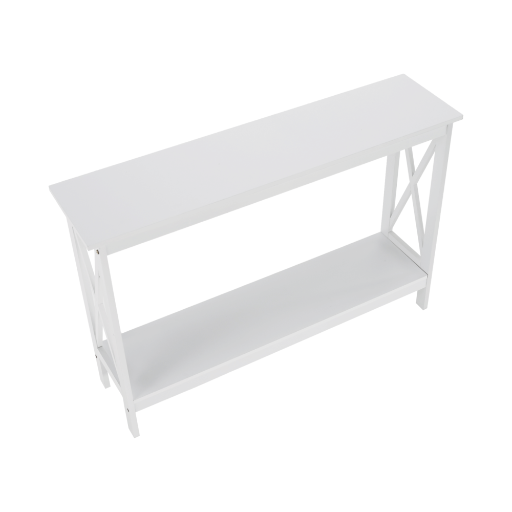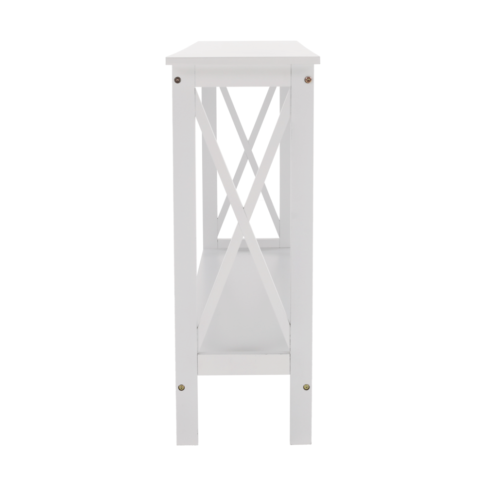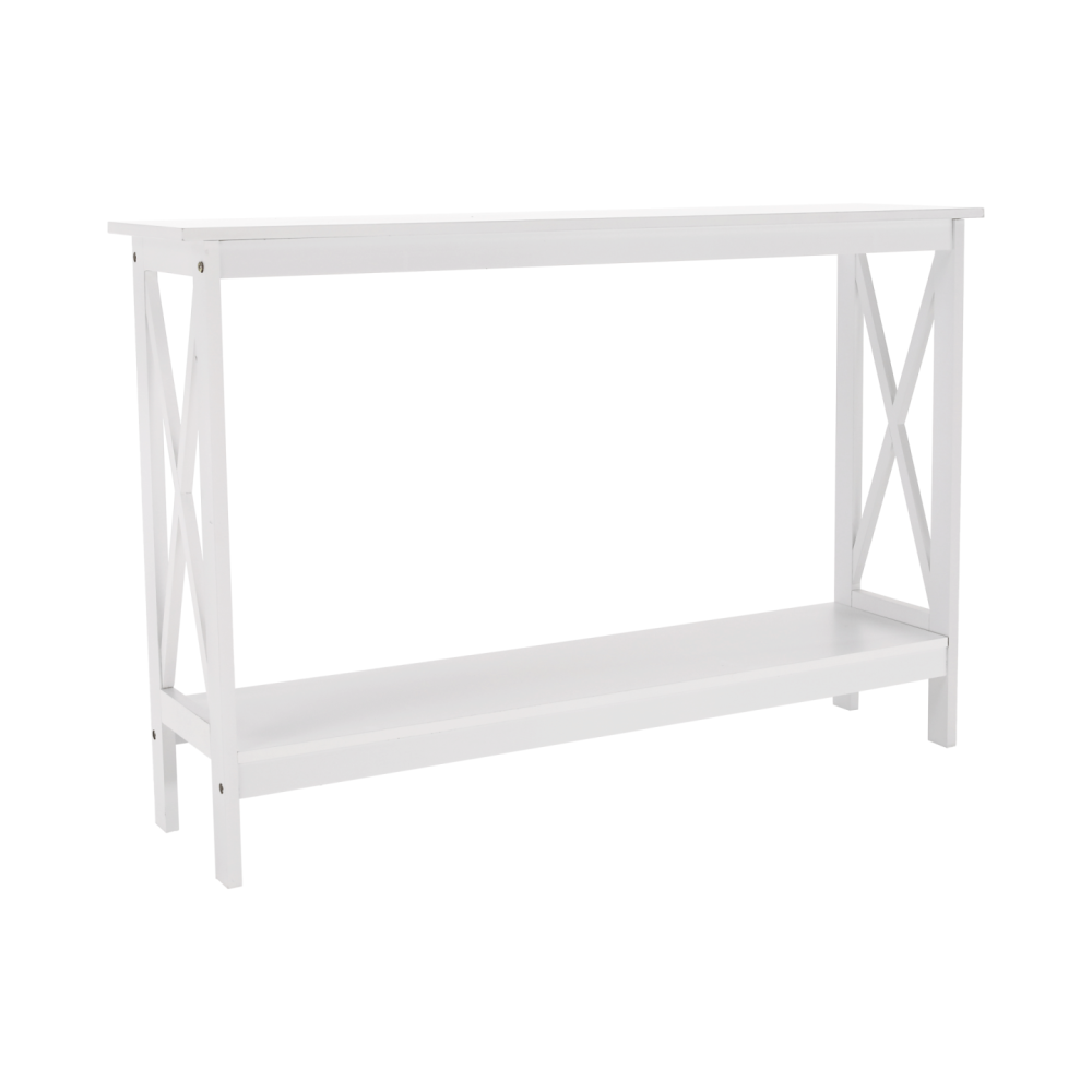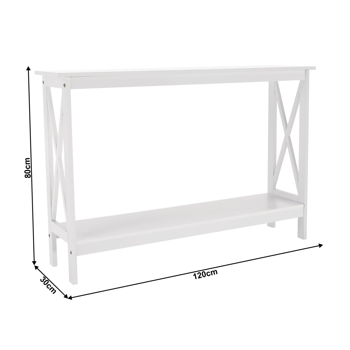 Na jeho výrobu byla použita MDF v bílém barevném provedení. Stolek v spodní části disponuje policí. Na vrchní desku si můžete vystavit dekorativní předměty, suvenýry, fotografie, vázu s květinami nebo hrnkové květiny i svíčky. V předsíni ho využijete na odložení klíčů, kabelky a tašky, různých doplňků a všeho, co při odchodu z domu potřebujete mít na očích a ihned po ruce.
