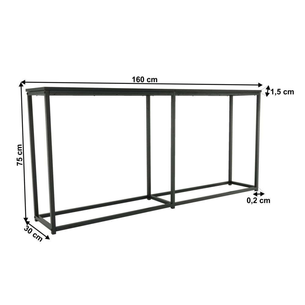 Materiál konstrukce: ocel Barva konstrukce: černá Materiál desky: DTD fóliovaná Tloušťka materiálu: 15 mm Barva desky: tmavě šedá grafit Rozměry (ŠxHxV): 160x30x75 cm industriální styl příruční odkládací Jednoduché a univerzální provedení estetický vzhled funkční multifunkční využití Hmotnost: 10,3…