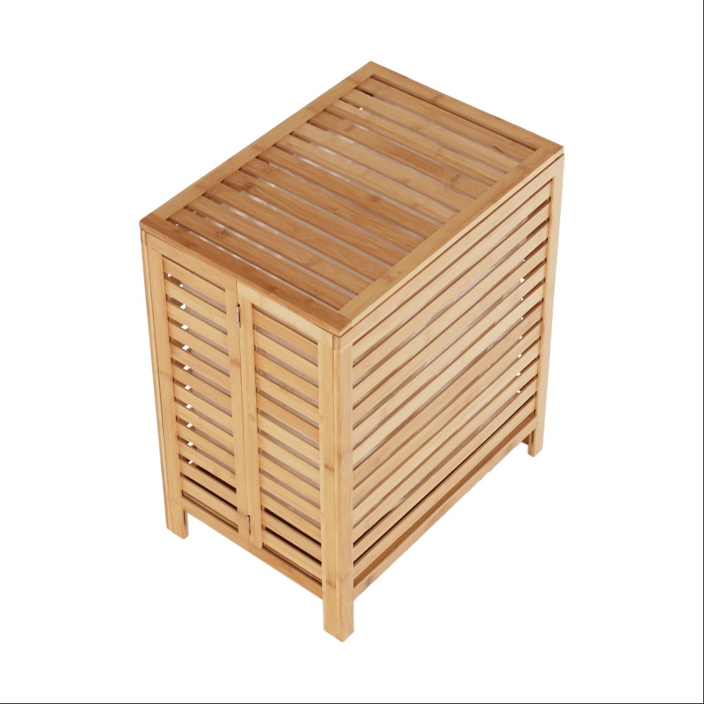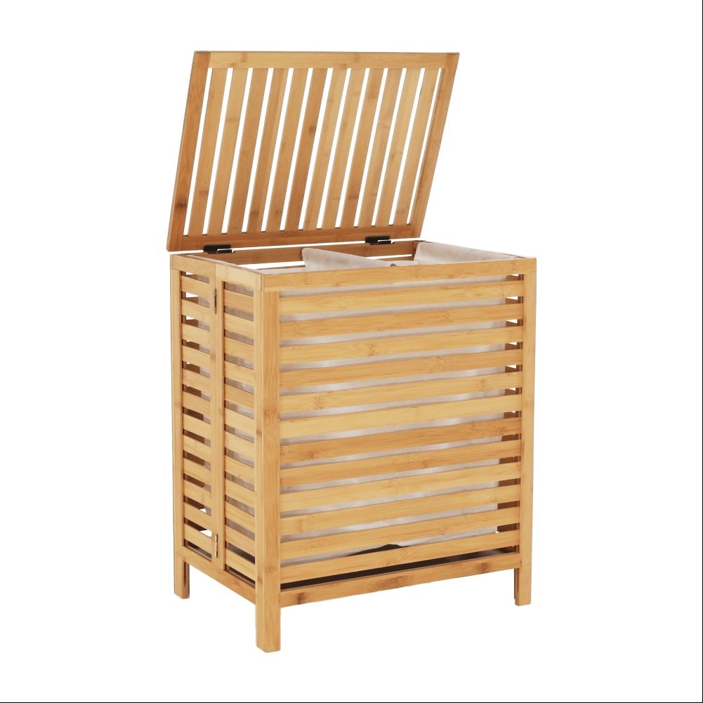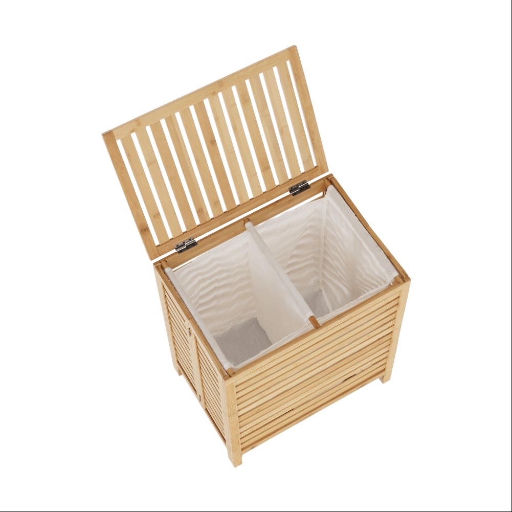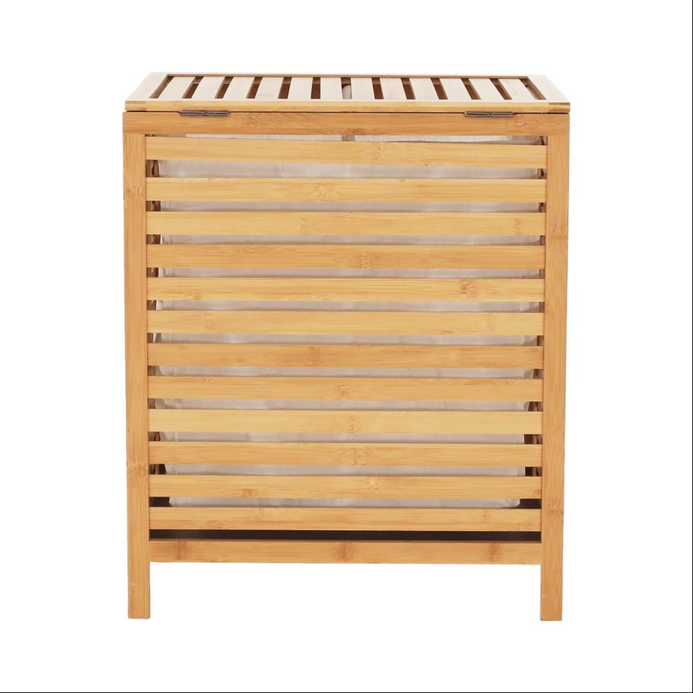 Materiál: bambus / látka Barva: přírodní Rozměry (ŠxHxV): 50x35x60 cm Vyjímatelný látkový pytel Látkové země mohou prát v pračce Objem: 105 litrů Skládací koš Odvětrávaný úložný prostor Úložný prostor rozdělený na dvě části Dodáváno v demontu