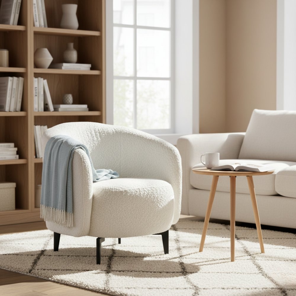 Křeslo je symbolem odpočinku a volného času. Celočalouněné je látkou Abriamo Bouclé v bílém provedení, takže jej můžete umístit do prostoru a nechat jej vyniknout. Maximální komfort a pohodlné sezení zajišťuje výplň z pružiny vlnovcové a PUR pěny T30. O stabilitu se postarají pevné kovové černé nohy. Dopřejte si relax v designovém křesle PRESO, které zapadne do každé místnosti v domácnosti.