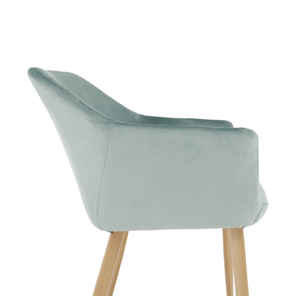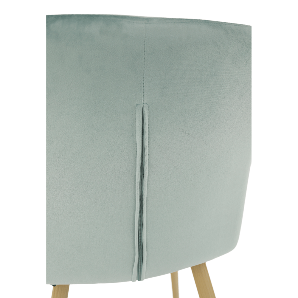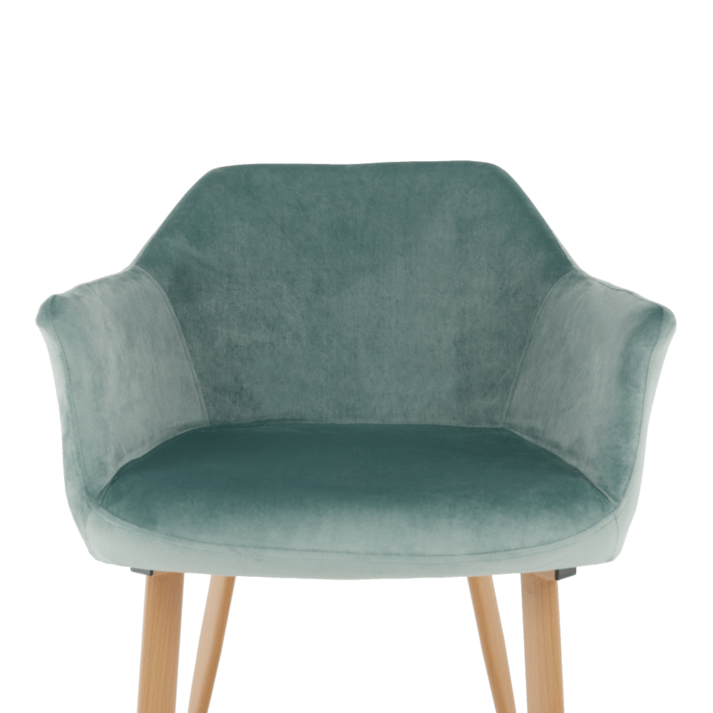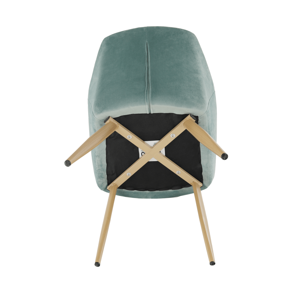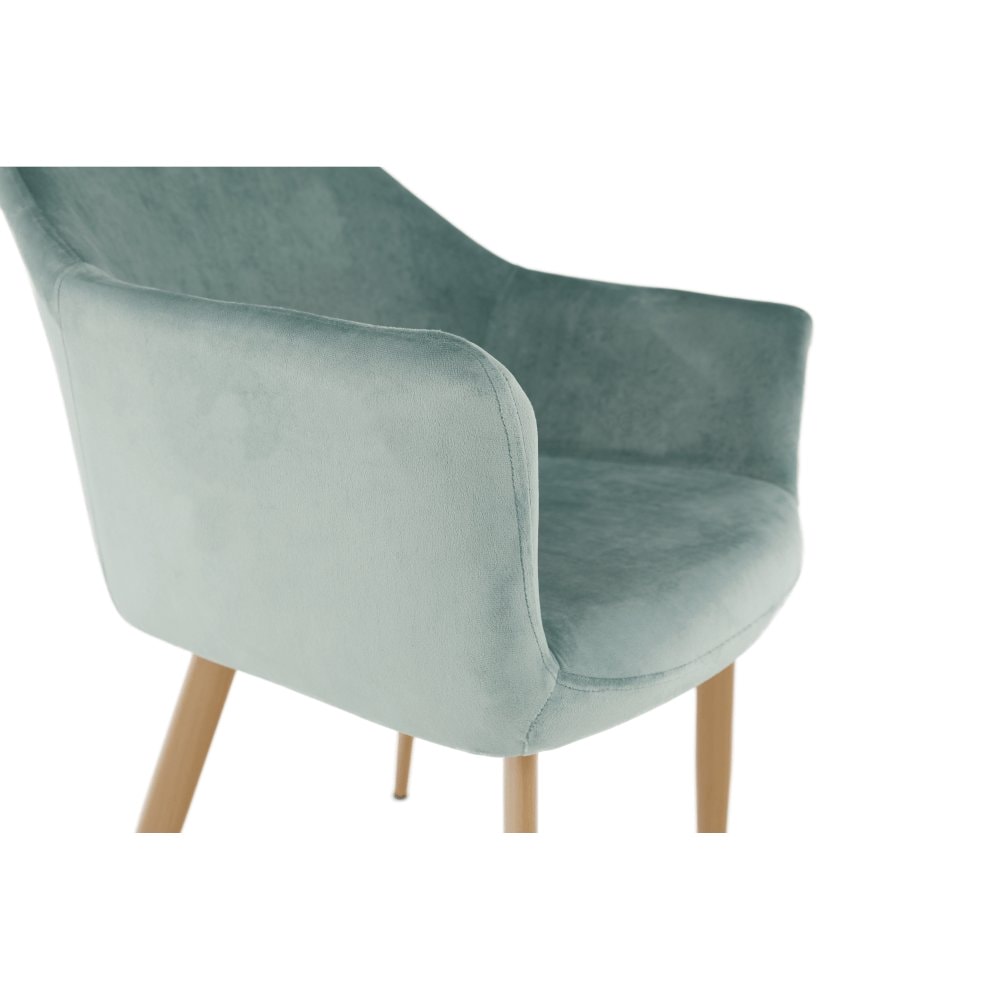 Designové křeslo ODOVEL Materiál: látka velvet/ kov Oděruodolnost textilie podle testu Martindale: 80 000 oděrek Barva: mentolová / buk Rozměry (ŠxHxV): 56x63x82 cm Výška sedu: 49 cm Hloubka sedu: 46 cm Nosnost: 90 kg Dodávané v demontu.