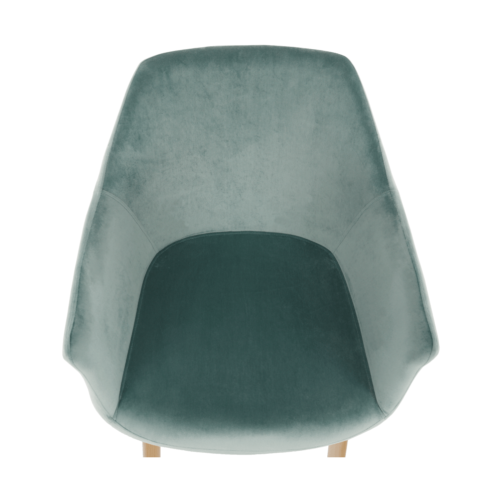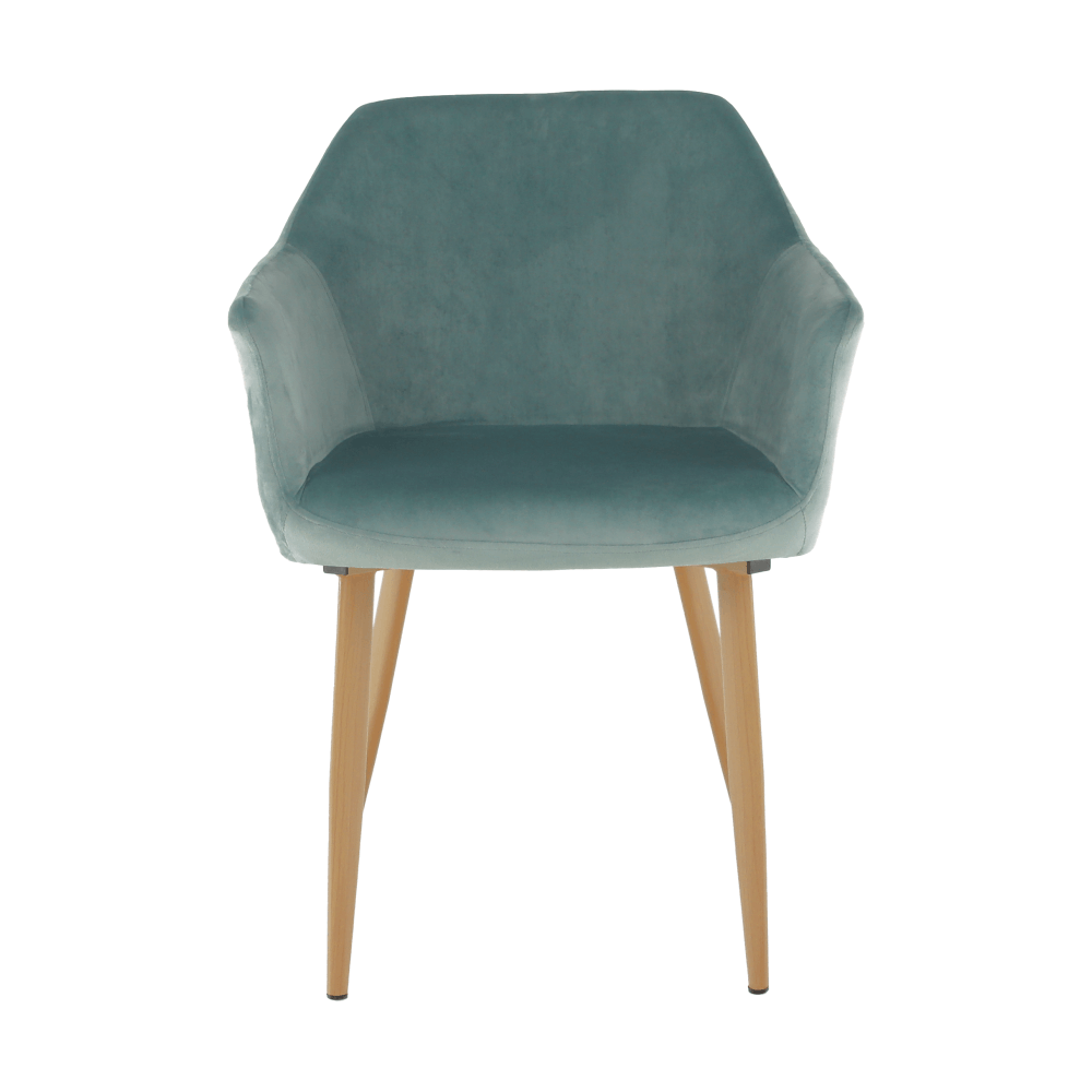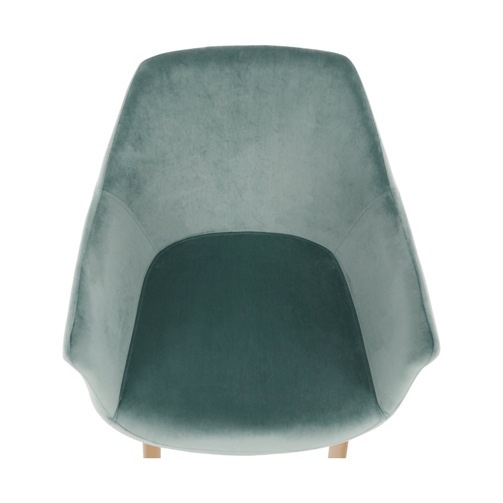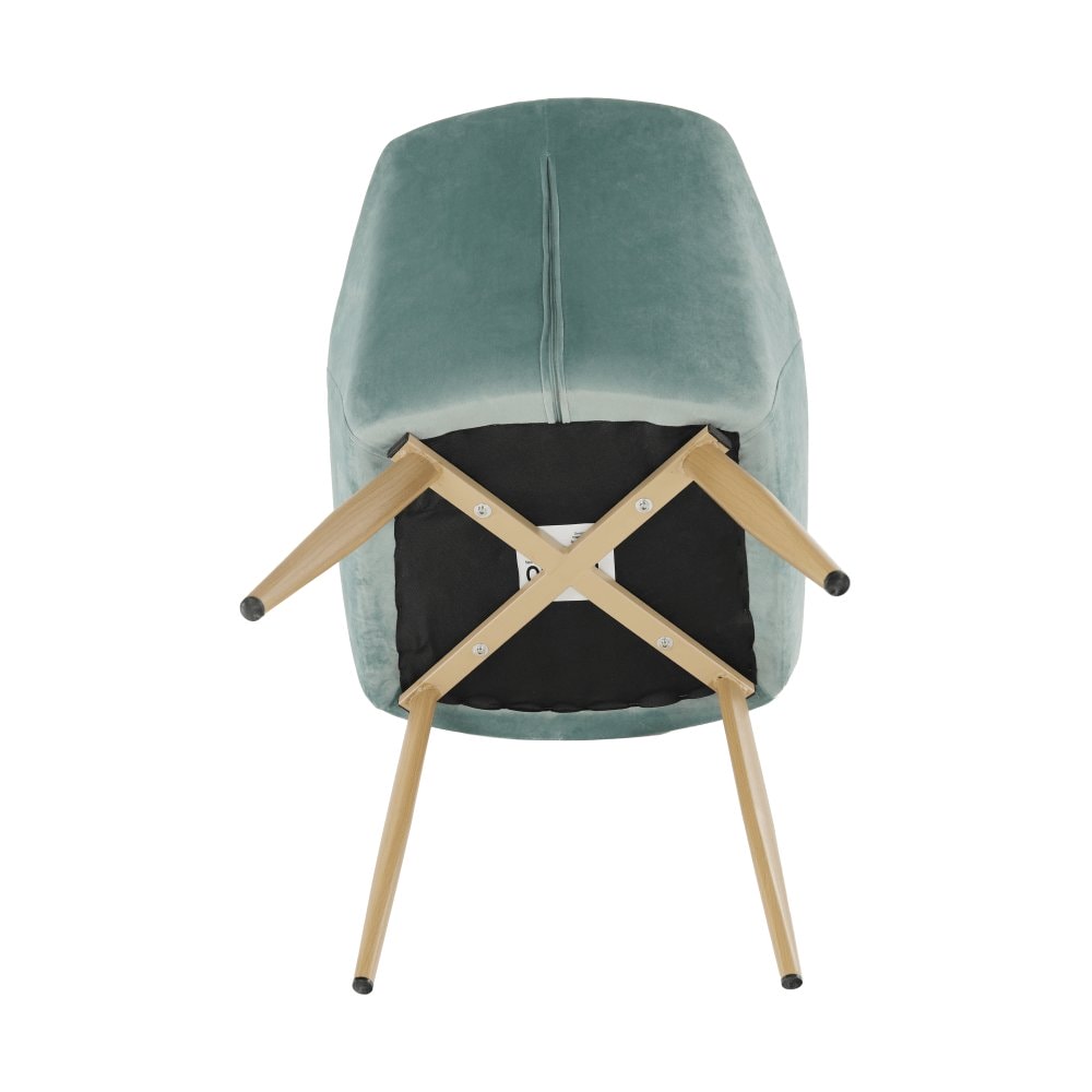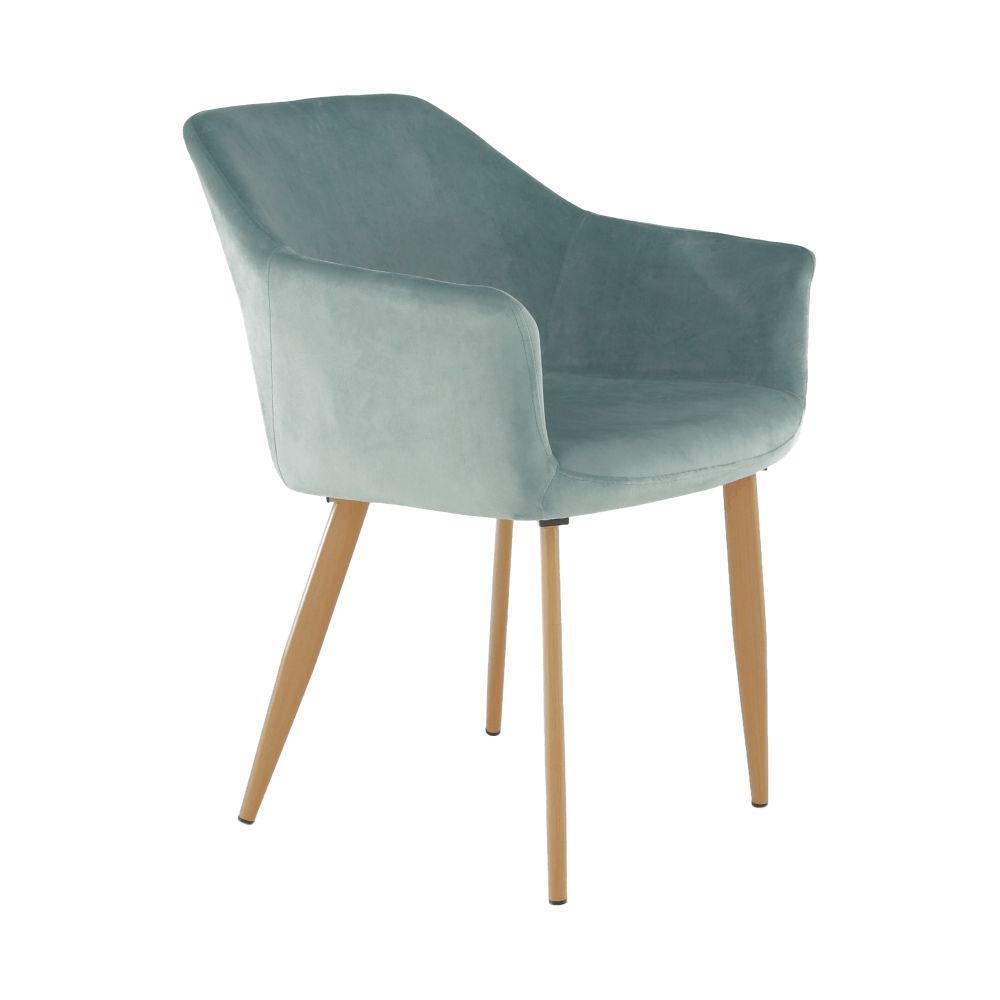 Designové křeslo ODOVEL Materiál: látka velvet/ kov Oděruodolnost textilie podle testu Martindale: 80 000 oděrek Barva: mentolová / buk Rozměry (ŠxHxV): 56x63x82 cm Výška sedu: 49 cm Hloubka sedu: 46 cm Nosnost: 90 kg Dodávané v demontu.