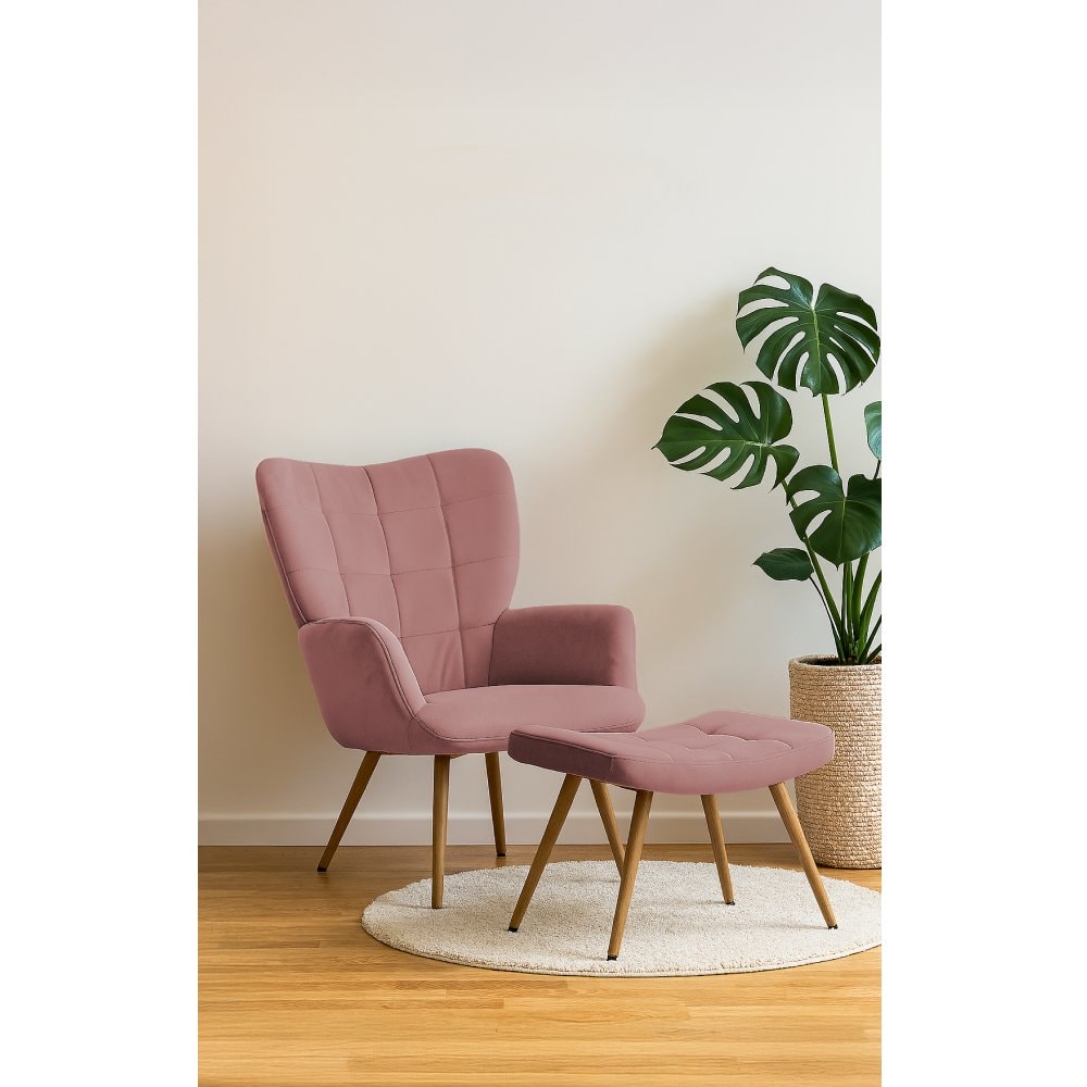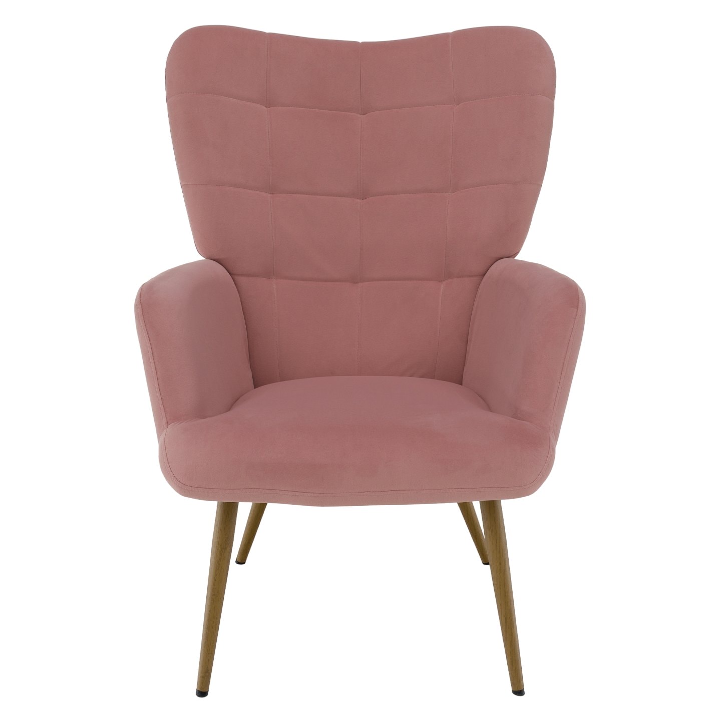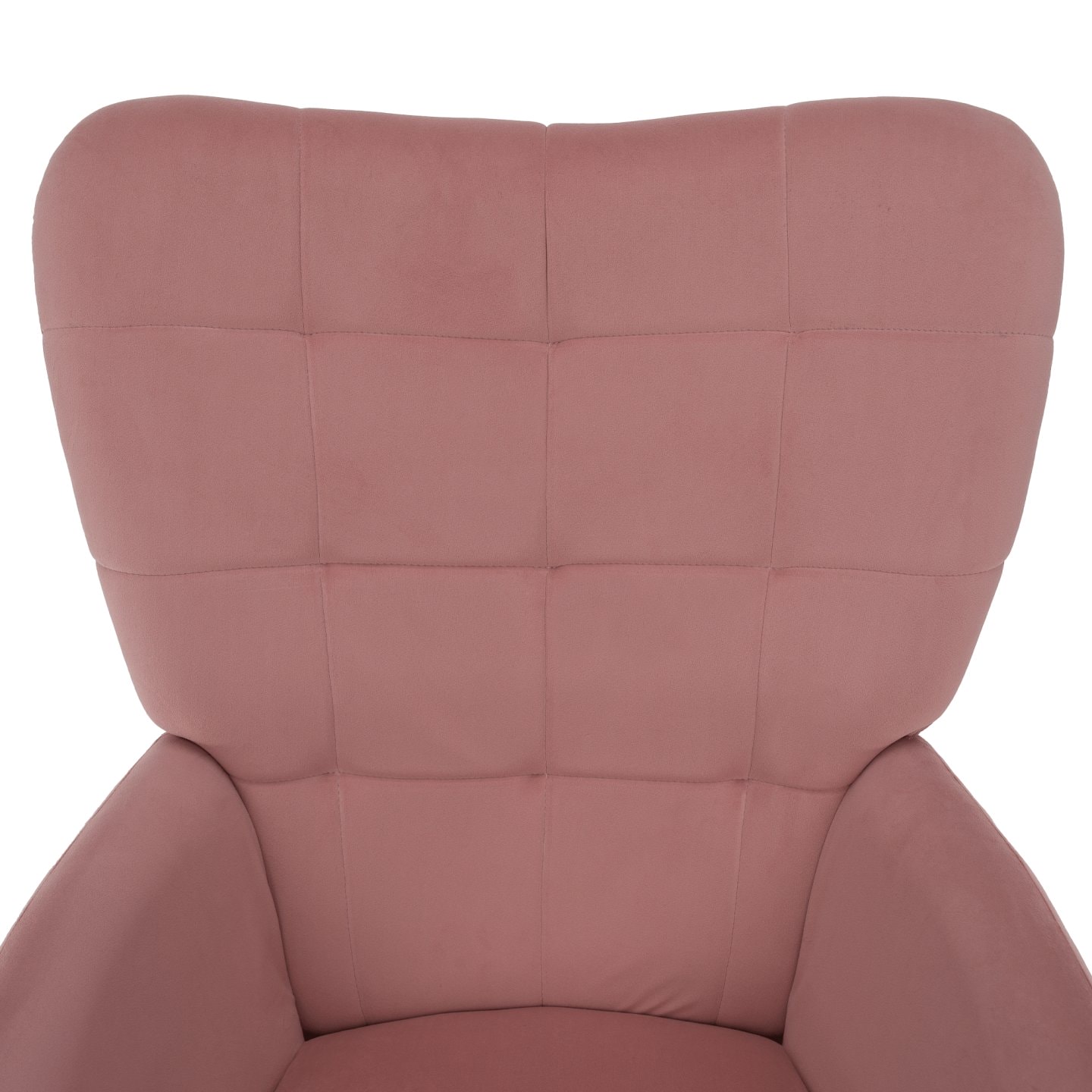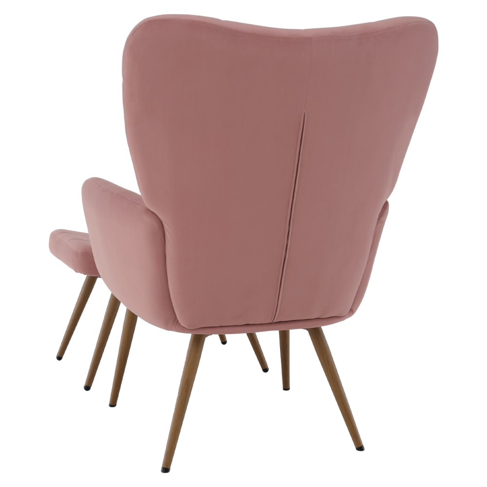Materiál: látka Velvet 32/kov Oděruodolnost textilie podle testu Martindale: 95 000 oděrů Barevné provedení: růžová/dub Rozměry křesla (ŠxHxV): 70x78x97 cm Výška sedu: 46 cm Hloubka sedu: 53 cm Rozměry podnože (ŠxHxV): 56,5x40x39 cm Nožičky na podnožce jsou výškově nastavitelné Nosnost křesla: 90…