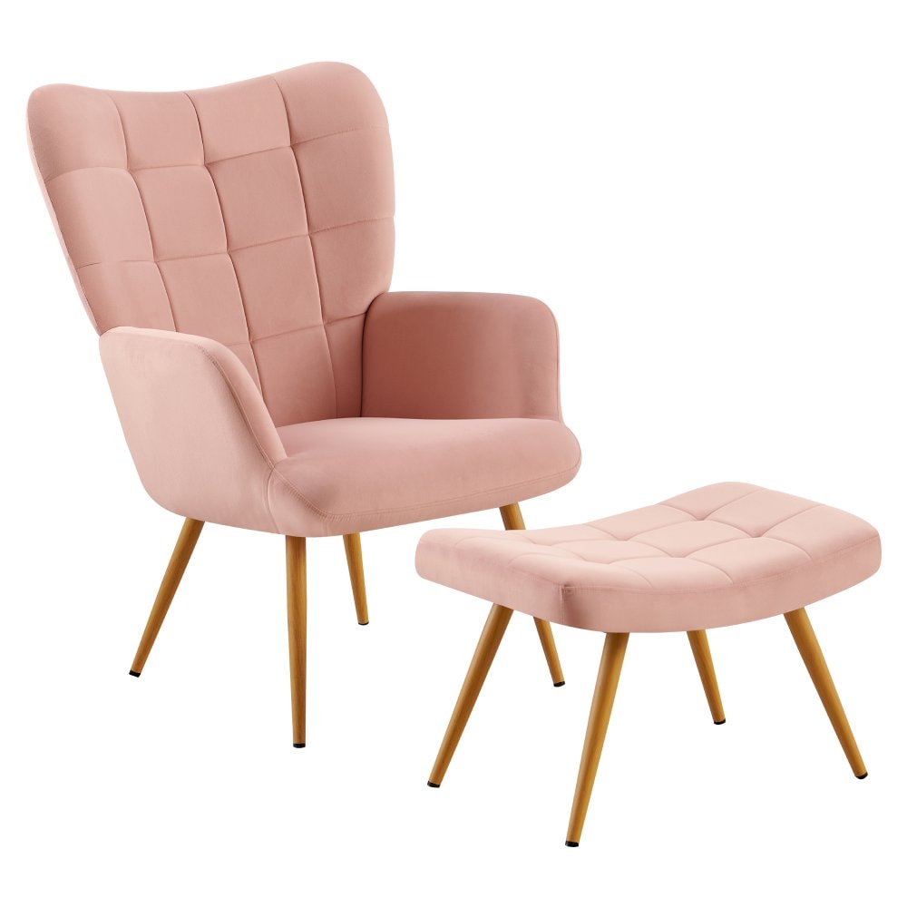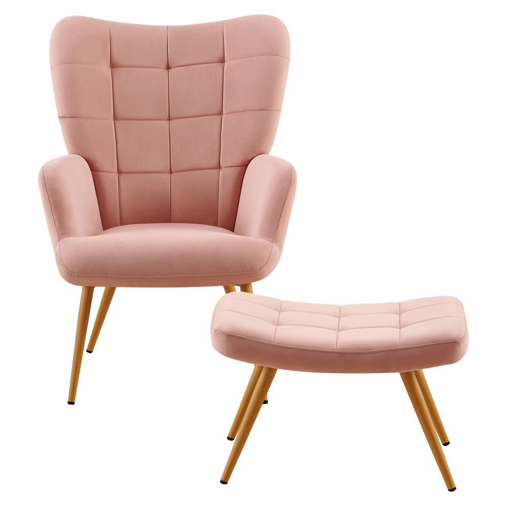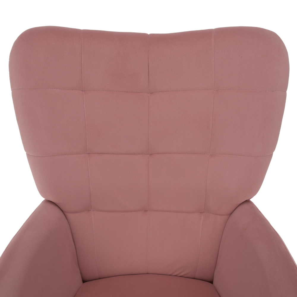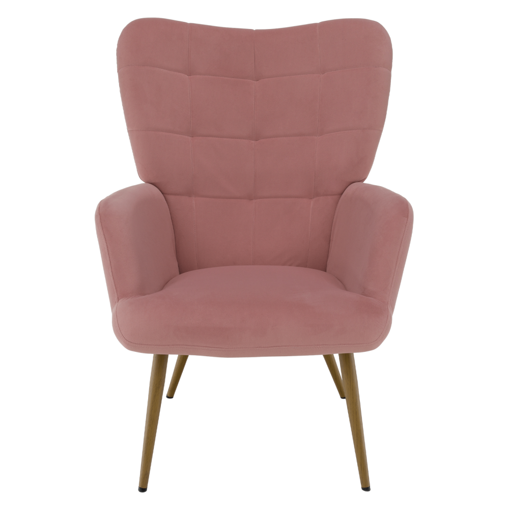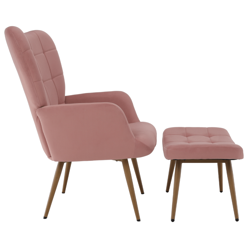 Čalouněno je kvalitní sametovou látkou Velvet v růžovém barevném provedení. Dodáváno je s praktickou podnoží, která se postará o odpočinek pro vaše unavené nohy. Stabilitu křesla a podnože zajišťuje černý kov, který svojí kombinací s látkou Velvet dotváří celkový design. Opěradlová část křesla a vrch podnože jsou dekorativně prošívané. Křeslo, které bude skvělým a oblíbeným společníkem dlouhá léta.