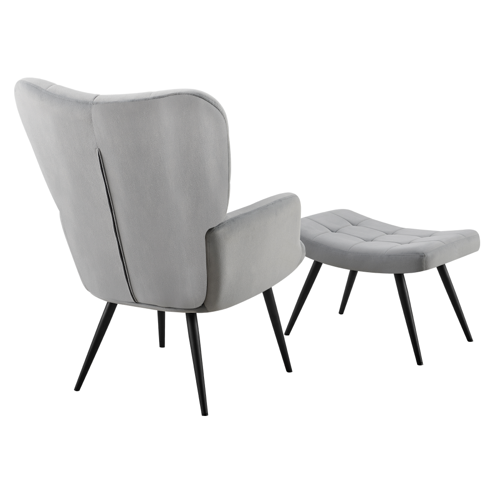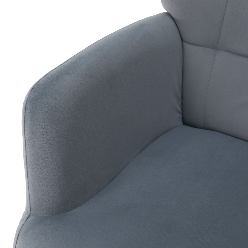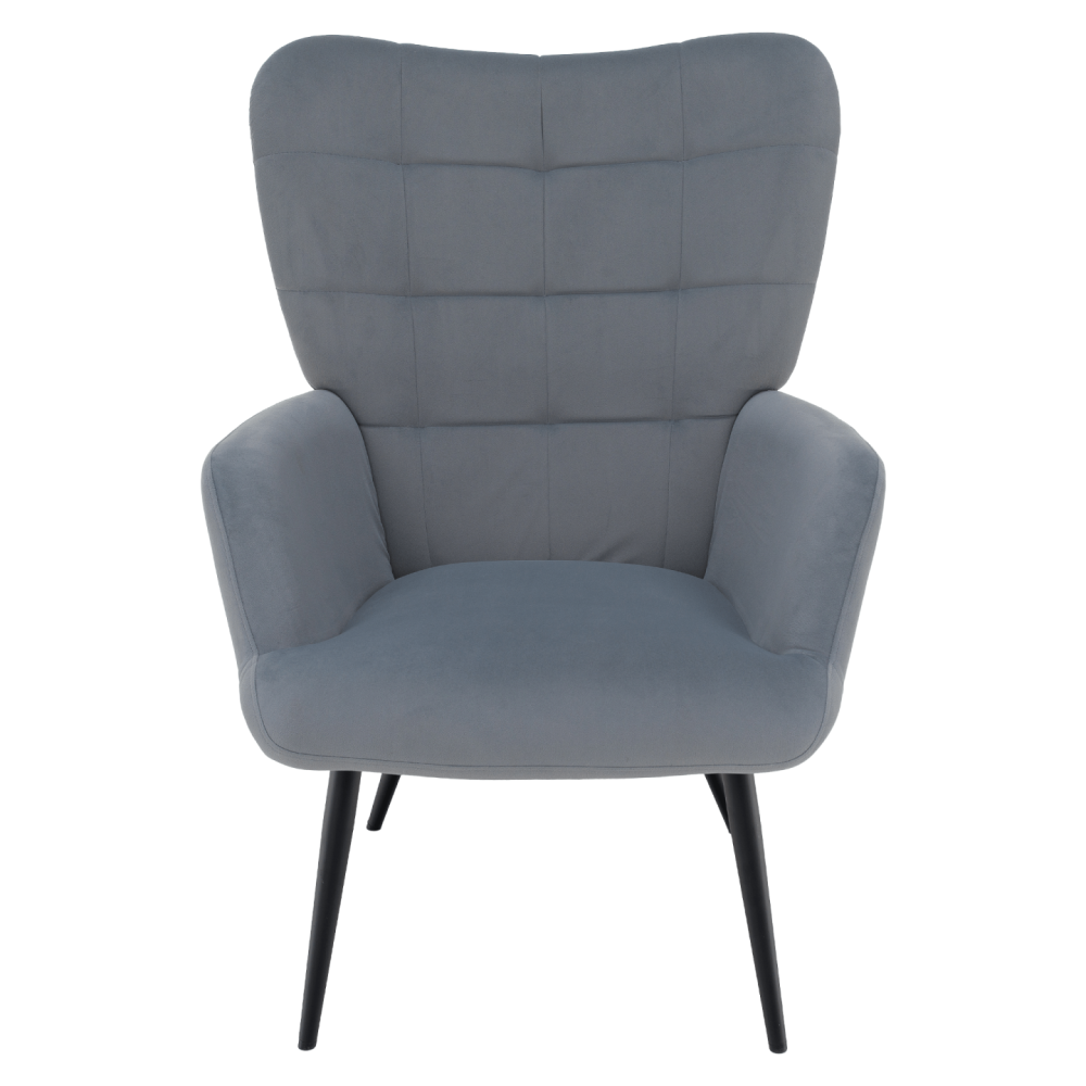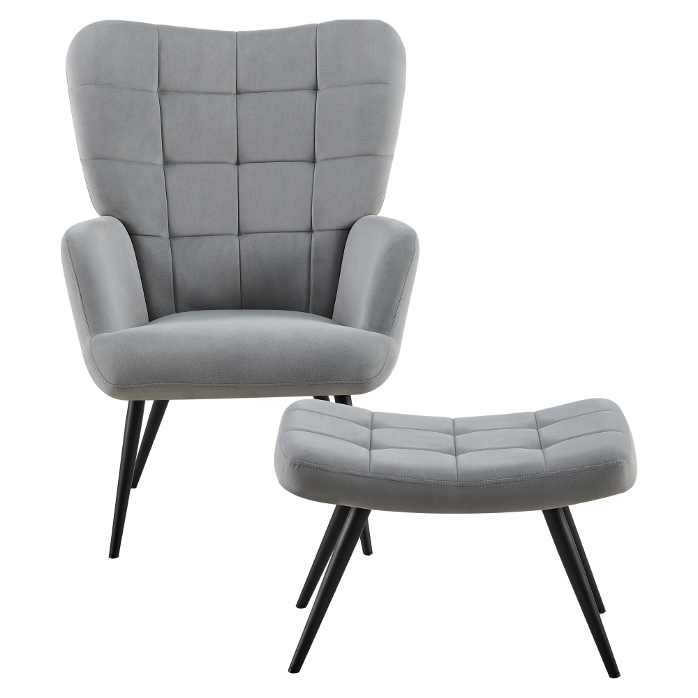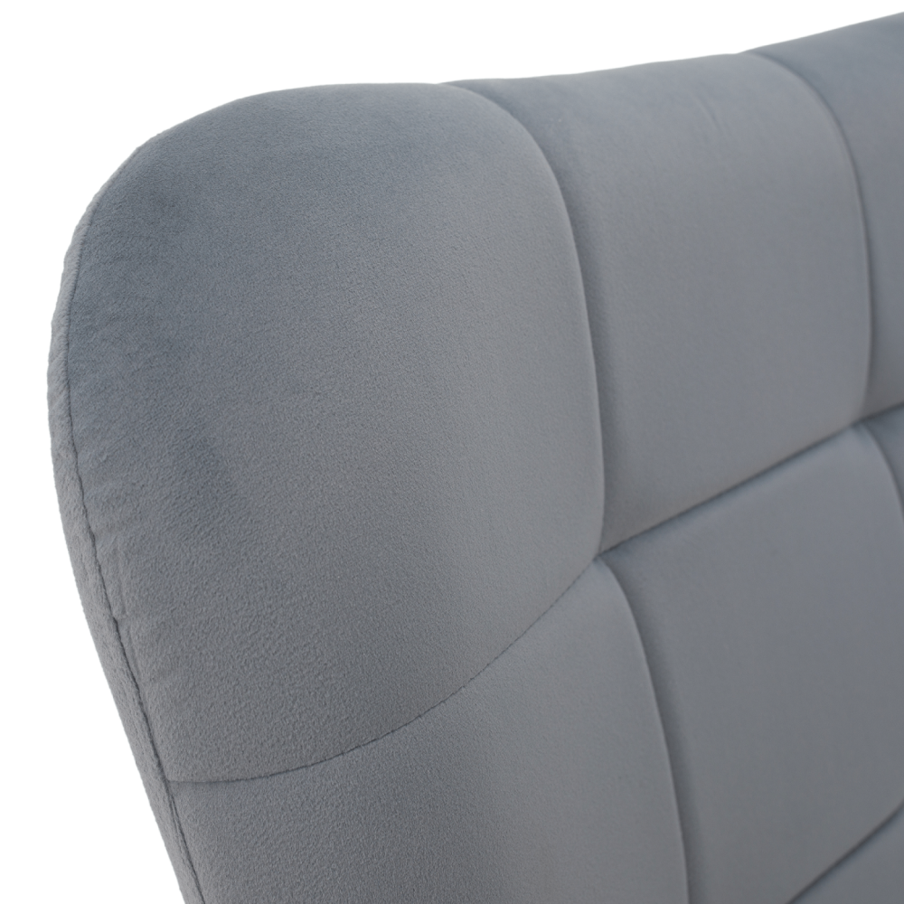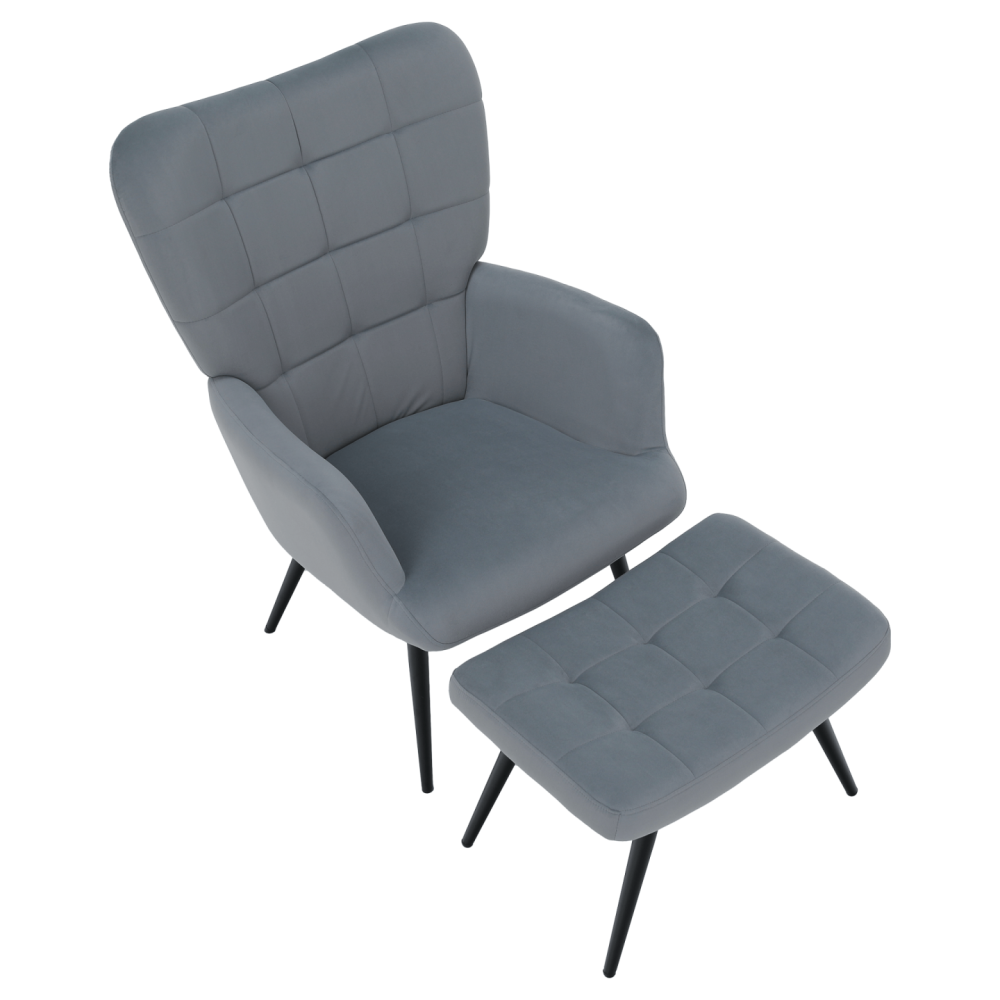 Čalouněno je kvalitní sametovou látkou Velvet v šedém barevném provedení. Dodáváno je s praktickou podnoží, která se postará o odpočinek pro vaše unavené nohy. Stabilitu křesla a podnože zajišťuje černý kov, který svojí kombinací s látkou Velvet dotváří celkový design. Opěradlová část křesla a vrch podnože jsou dekorativně prošívané. Křeslo, které bude skvělým a oblíbeným společníkem dlouhá léta.