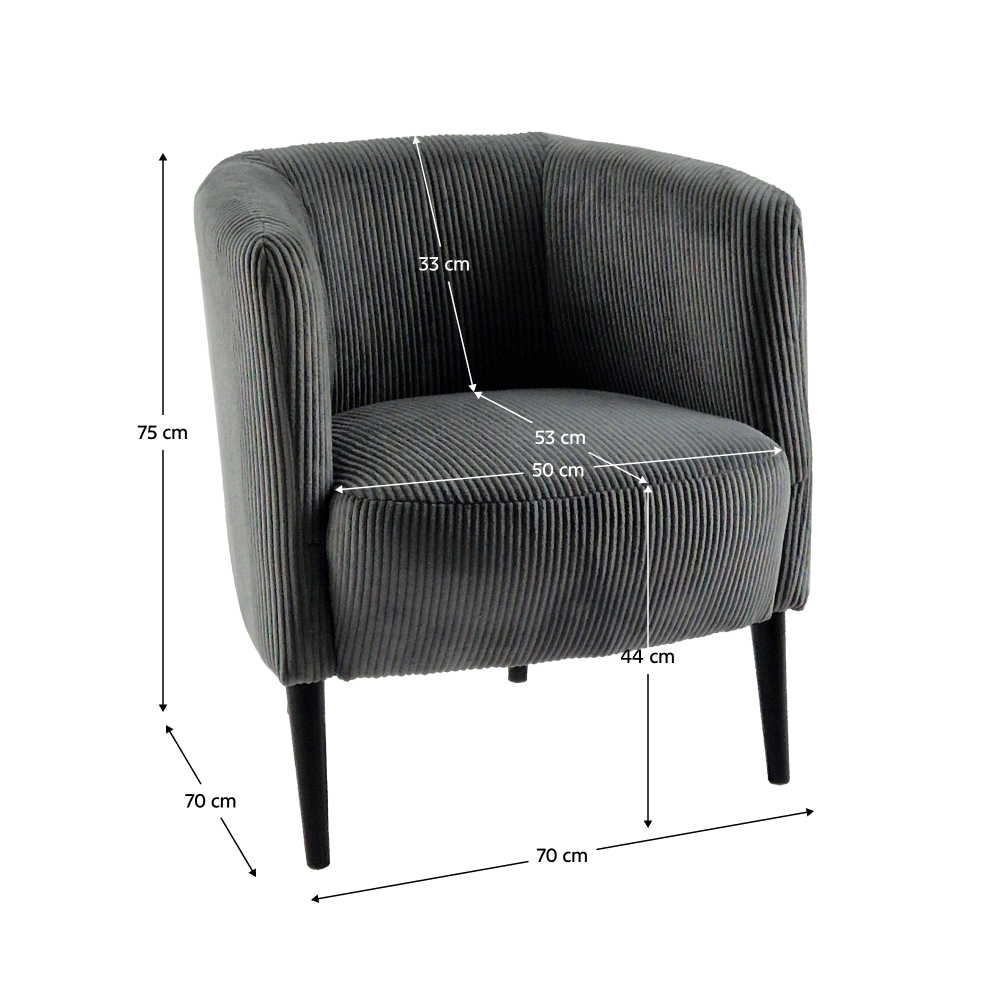 Materiál: látka Poso 60/dřevo Oděruodolnost látky podle testu Martindale: 90 000 oděrů Barva: šedá/černá Rozměry (ŠxHxV): 70x70x75 cm Výška sedu: 44 cm Hloubka sedu: 53 cm Šířka sedu: 50 cm Výška zádové opěrky: 33 cm Výška područky: 73 cm Nosnost: 120 kg Jádro sezení: pružina falista/PUR pěna T30…
