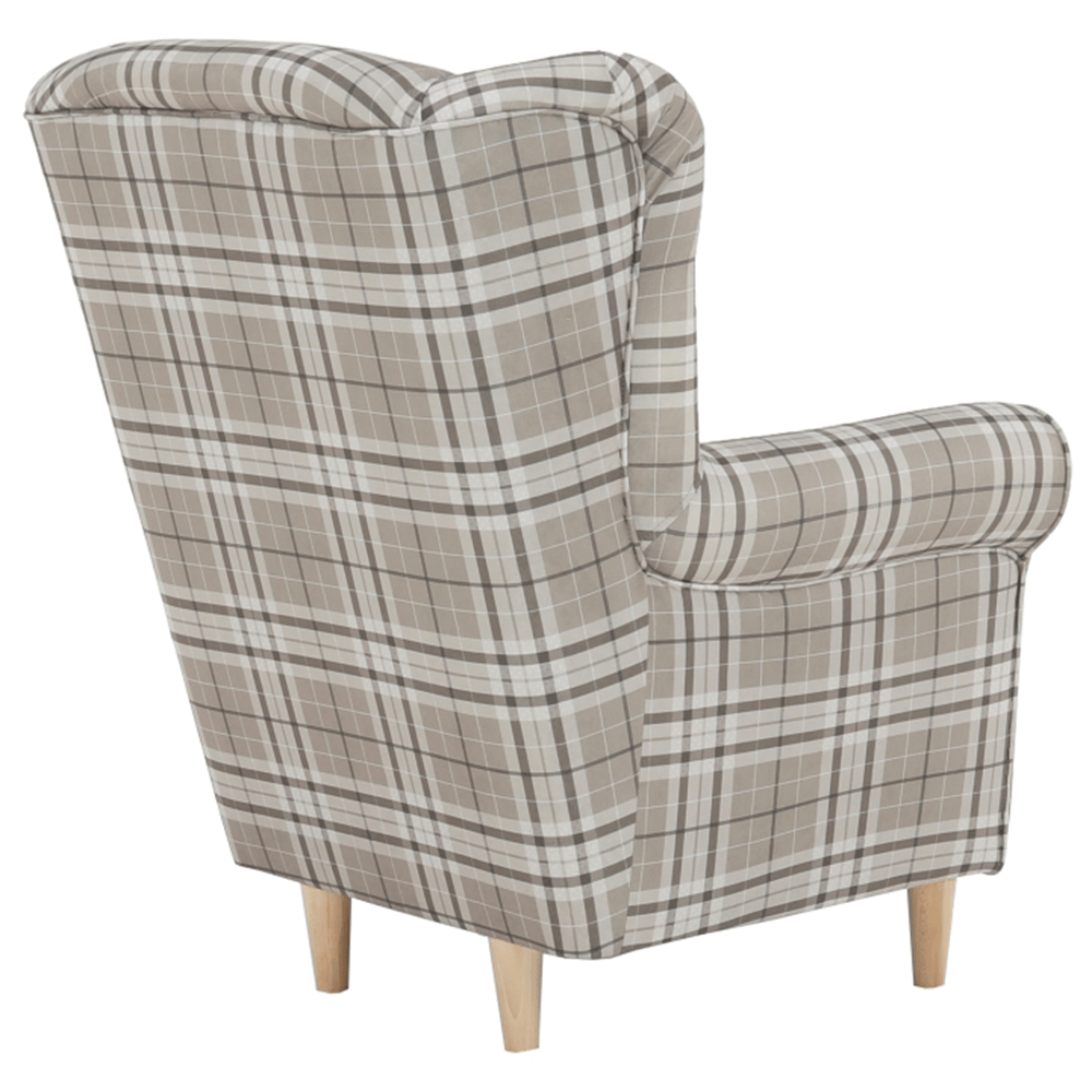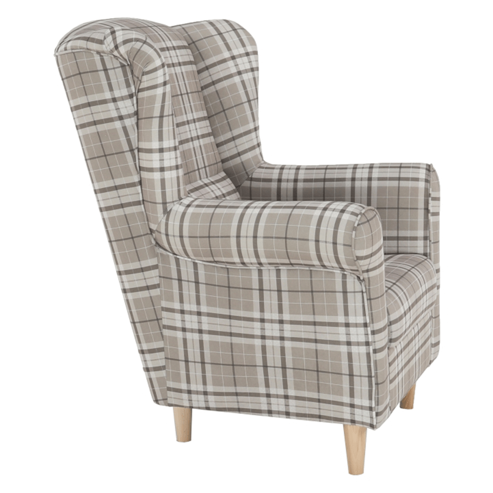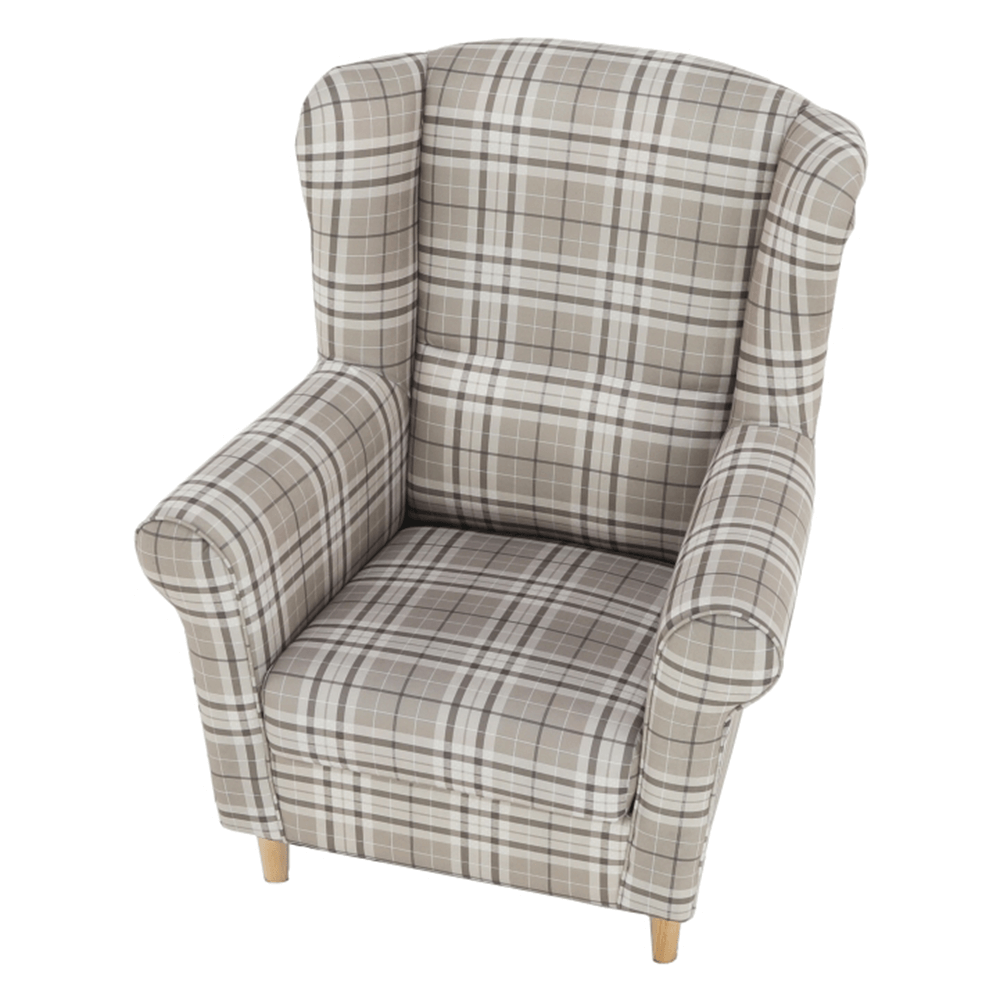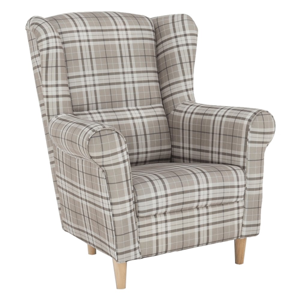 Křeslo-ušák Charlot v barevném provedení látky hnědé káro. Oděruodolnost textilie podle testu Martindale: 85 000 oděrek Dřevěné nožičky v barevném provedení buk. Rozměry (ŠxHxV): 86x82x105 cm Výška sedu: 42 cm Hloubka sedu: 48 cm Nosnost: 120 kg Možnosť objednania v 6 farebných prevedeniach látky…