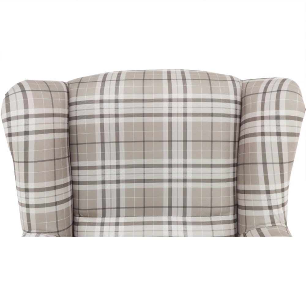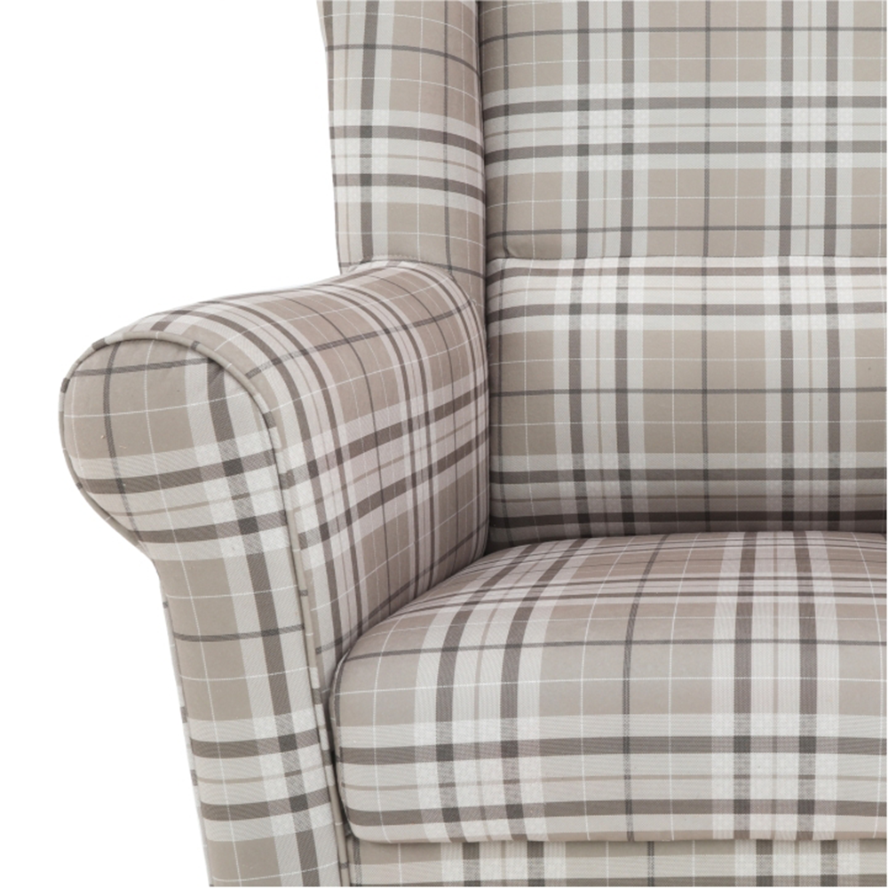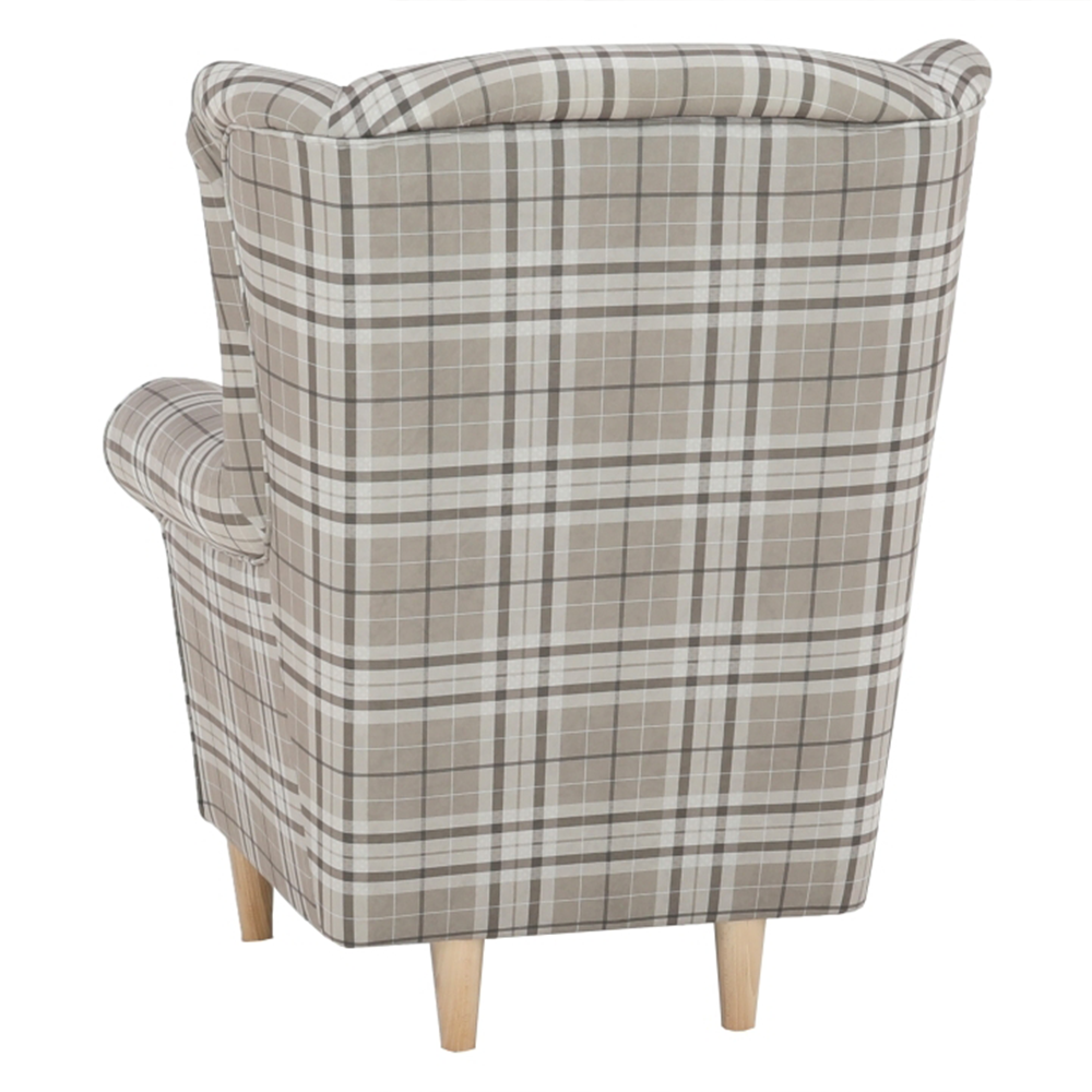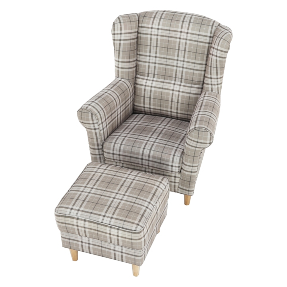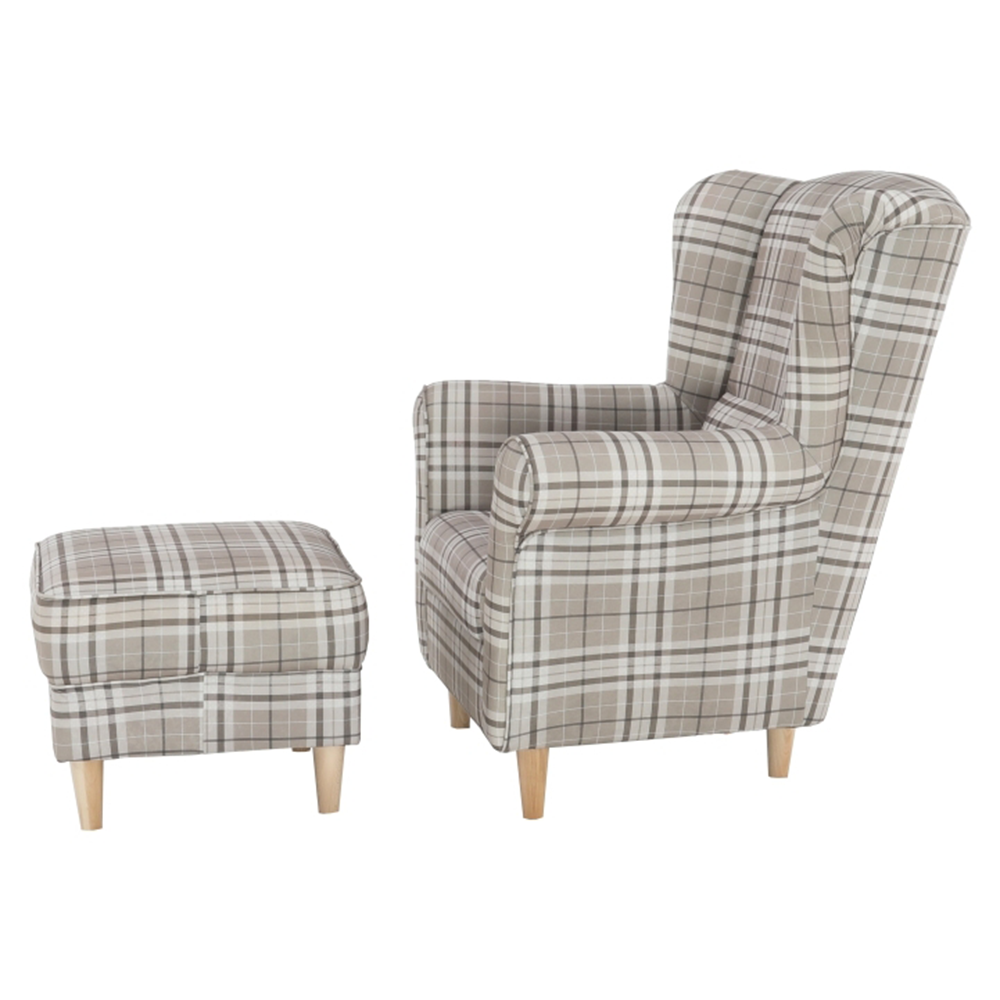 Křeslo ušák s taburetem, látka hnědé káro/buk, ASTRID