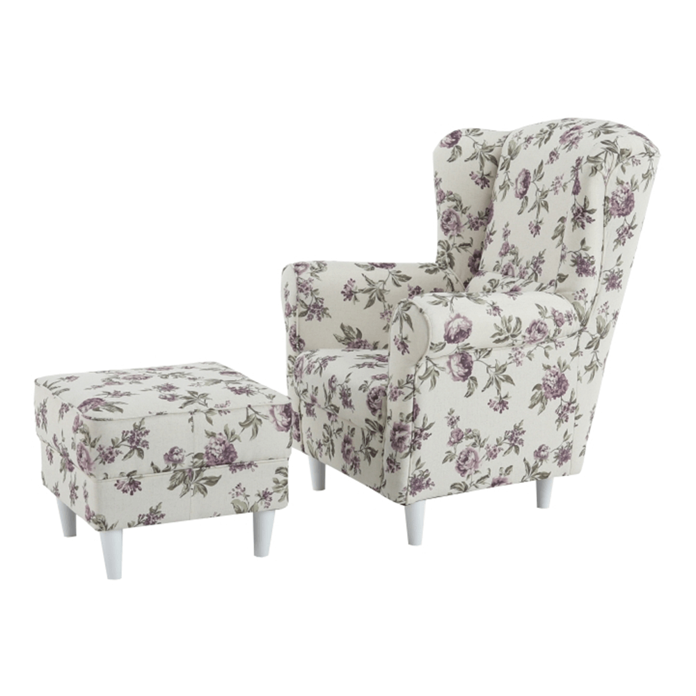 Křeslo ušák s taburetem, látka rose 18, ASTRID
