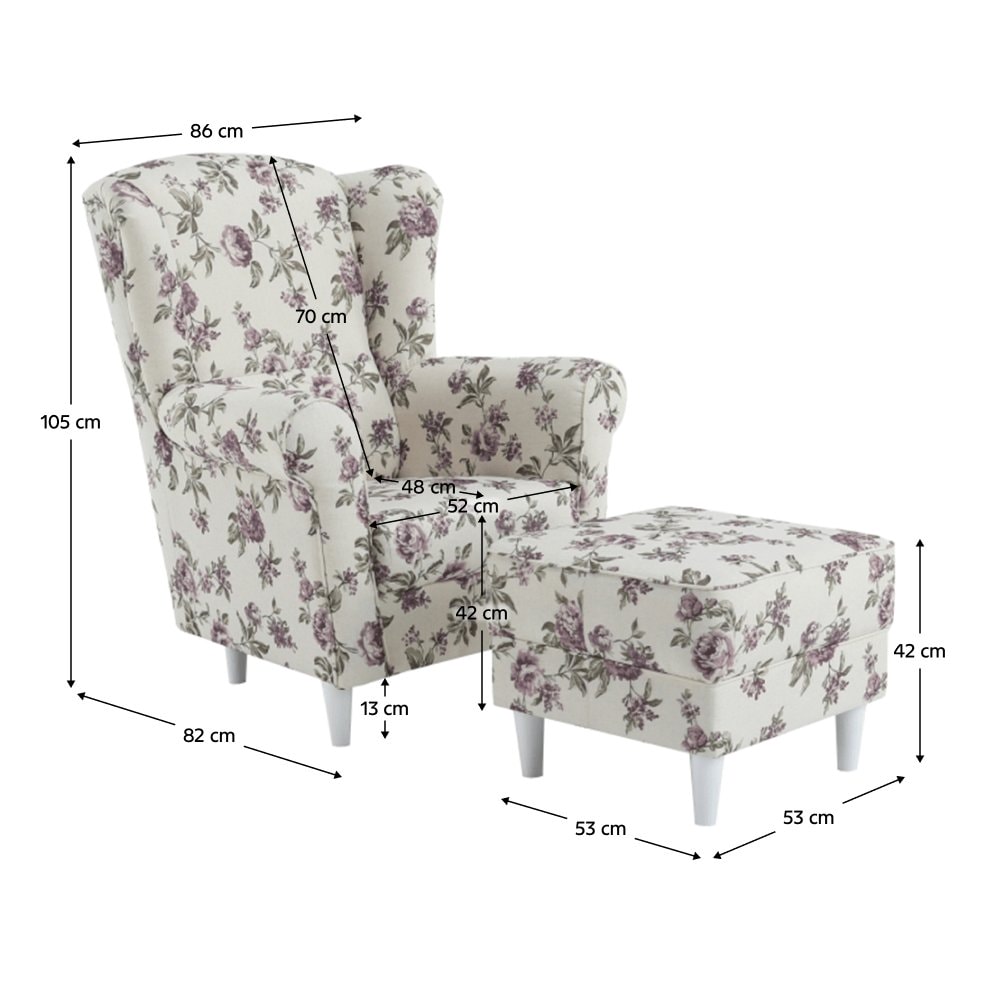 Pohodlné křeslo - ušák s taburetem Provedení: látka Rose 18 - nožičky dřevěné v barvě bílá Oděruodolnost textilie podle testu Martindale: 85 000 oděrek Rozměry (ŠxHxV): křeslo - 86x82x105 cm Výška spodního prostoru od podlahy: 13 cm Taburet - 53x53x42 cm Nosnost křesla: 120 kg Nosnost…