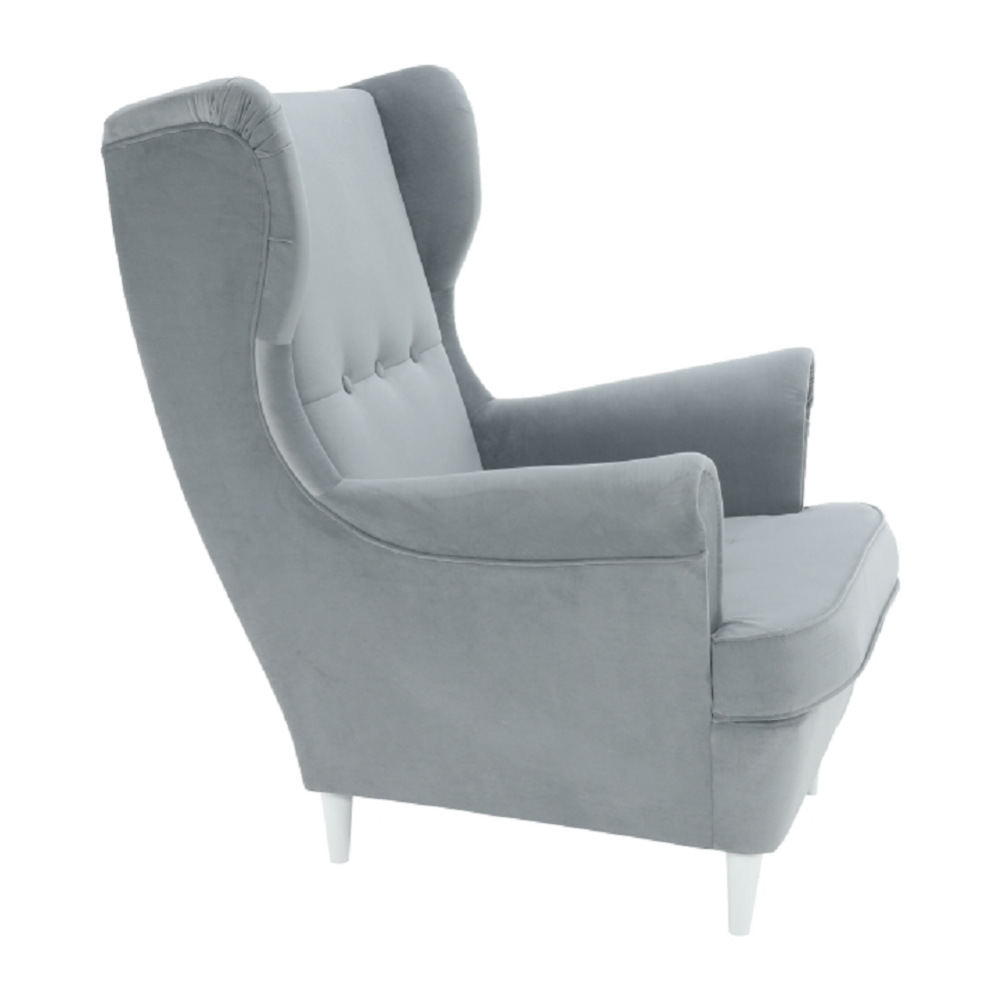 Křeslo ušák, světle šedá/bílá, RUFINO 3 NEW