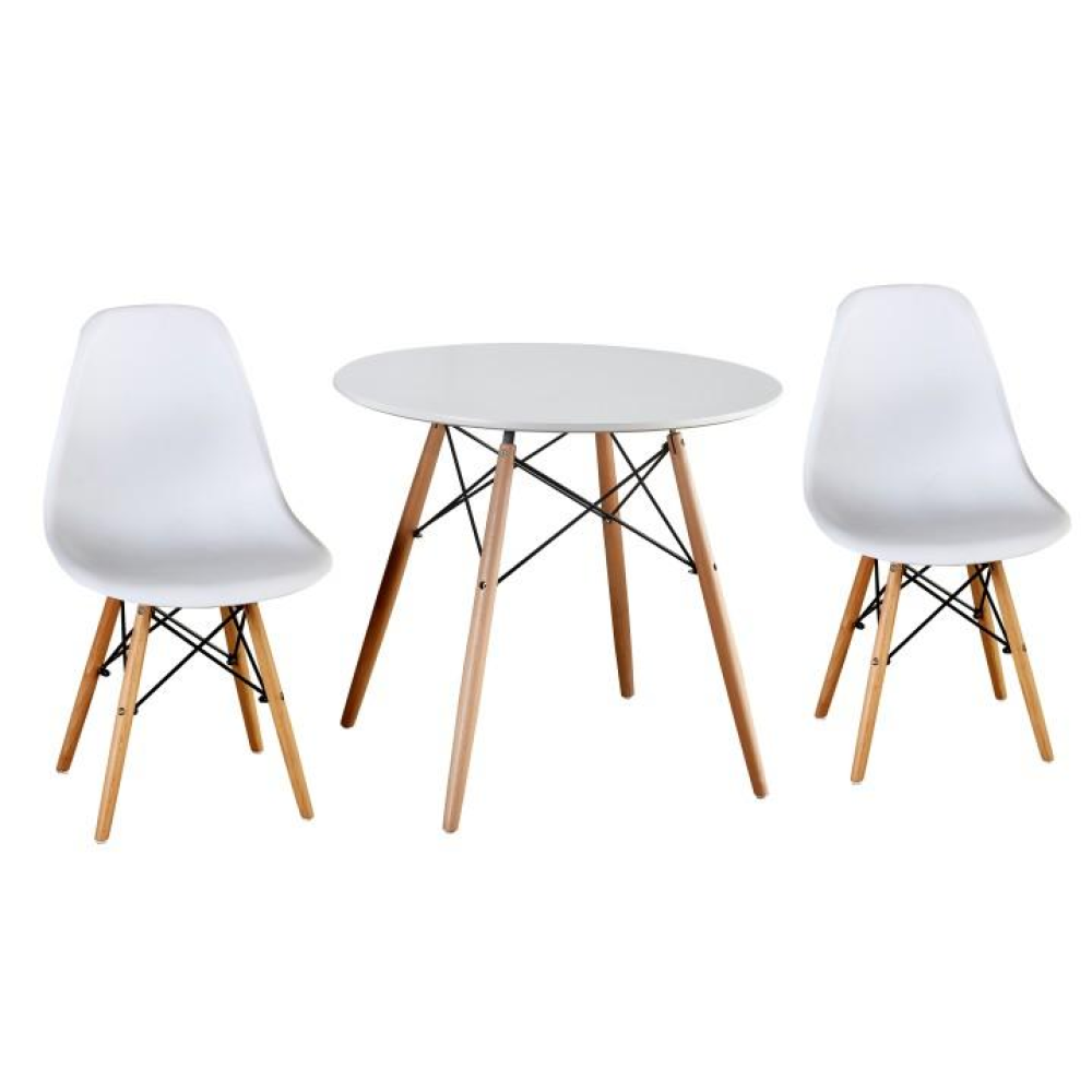 Jídelní stůl, bílá/buk, průměr 80 cm, ELCAN NEW TYP 2