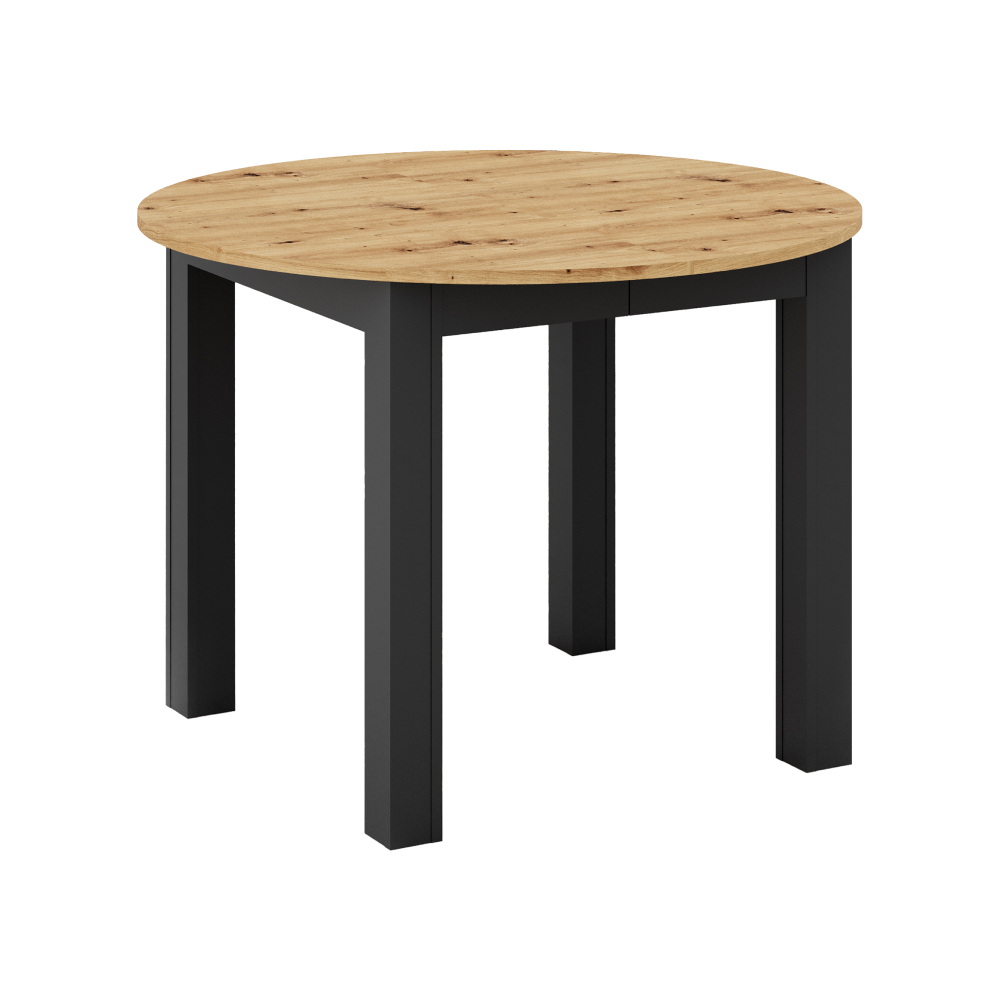 Jídelní stůl, kulatý, dub/černá, průměr 110 cm, REVENTON NEW