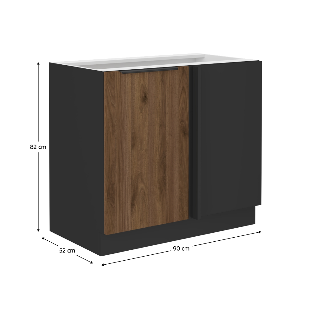 Spodní rohová skříňka, černá, ARAKA/MENZO/SIBER 30 D ZAK BB