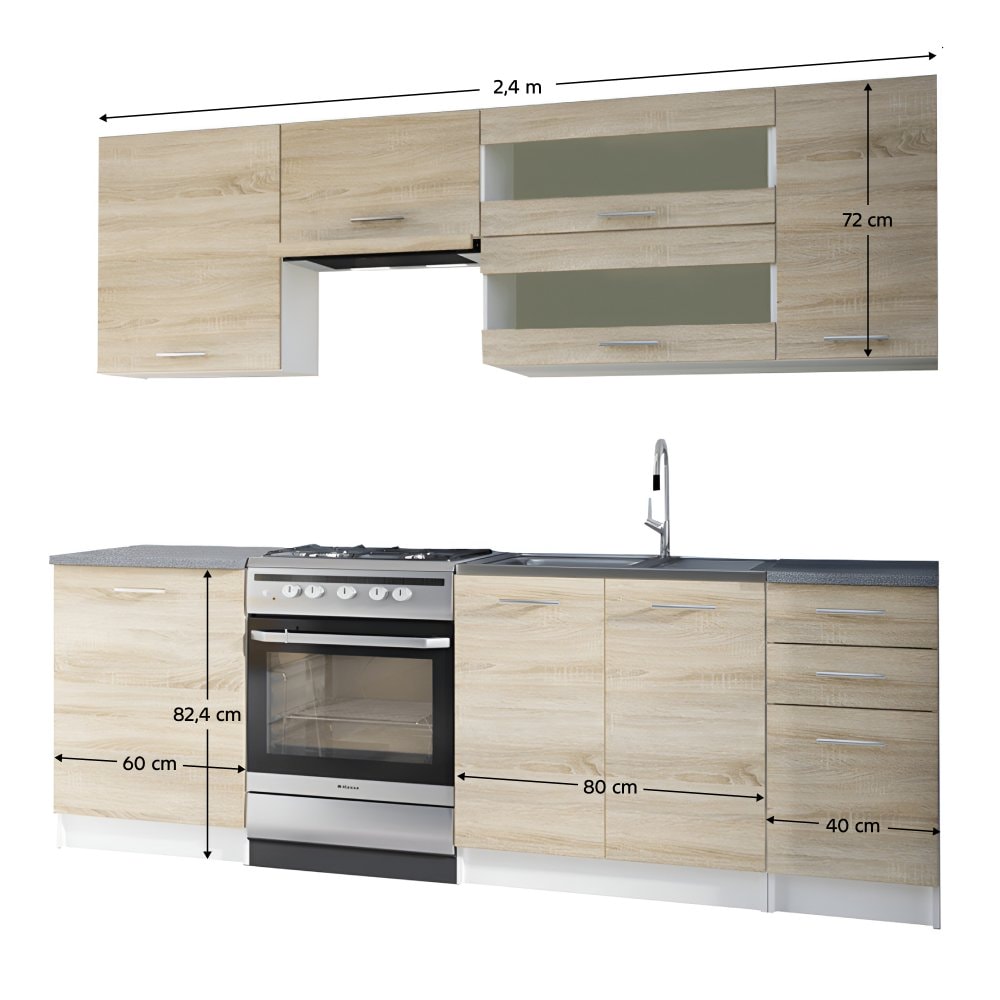 Kuchyňská linka 2,4m, dub sonoma / bílá, FABIANA