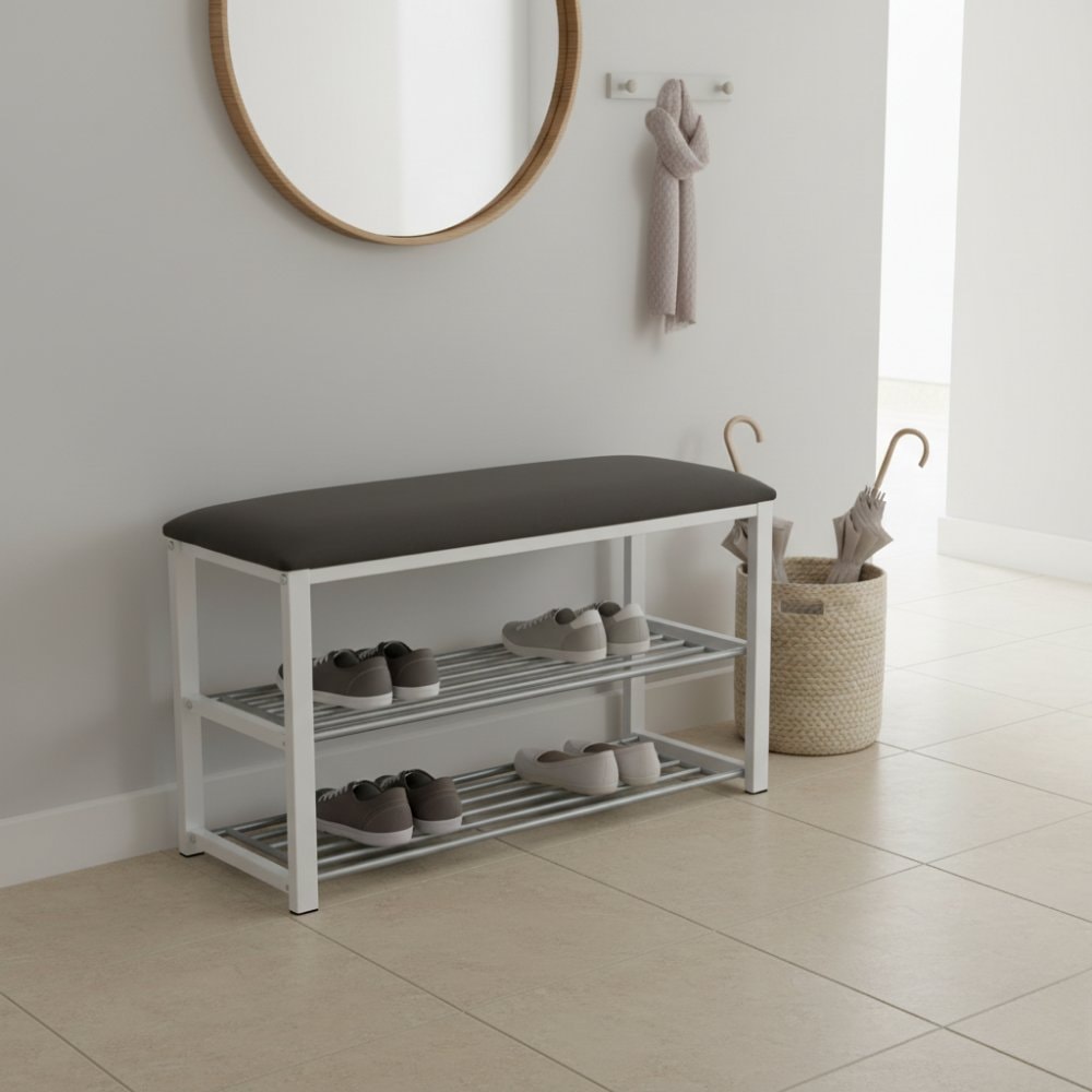 Trendový botník LANGELLA který tuto kombinovanou možnost nabízí je vyroben z kvalitního kovu v šedé barvě a je očalouněný látkou v barevném provedení šedá. Více vás nemusí trápit otázka, kam odložíte své boty a boty vaší návštěvy. Dvě kovové police vám zajistí dostatek úložného prostoru. Funkci sezení kterou botník nabízí ocení především děti a starší osoby. Jednoduchý, ale zároveň dokonalý pomocník do vaší předsíně - to je botník Langella.