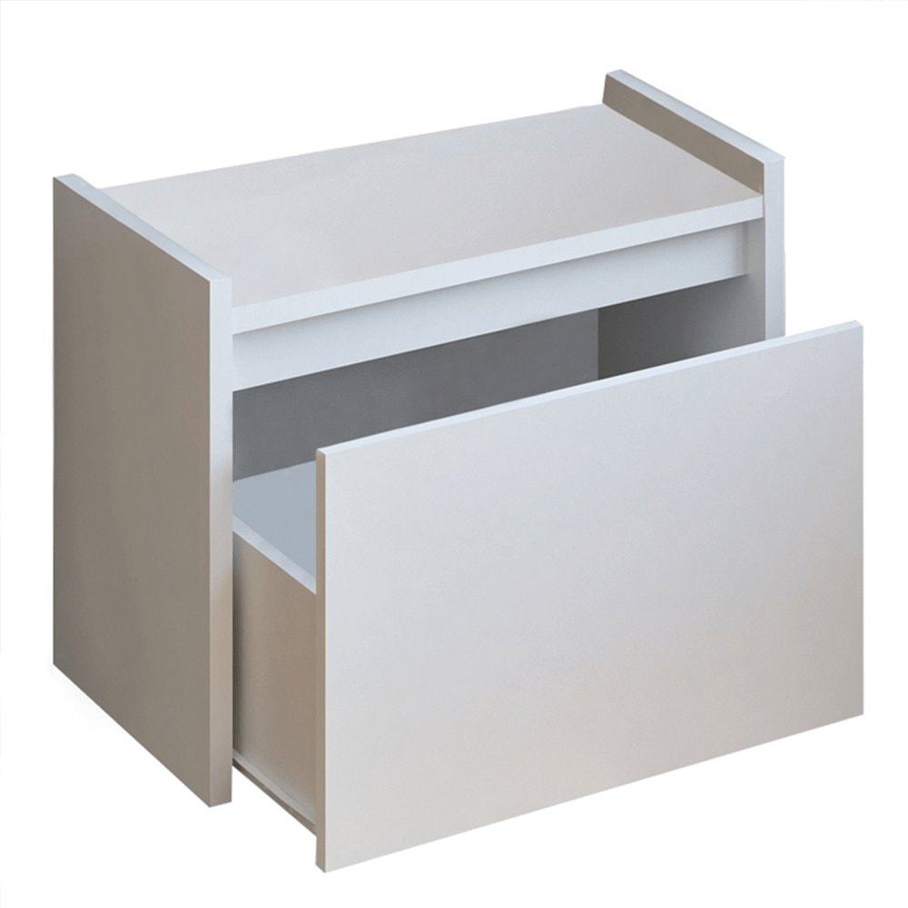 Lavice s úložným prostorem, BERGI Materiál: DTD laminovaná Barva: bílá Rozměry (ŠxHxV): 60x30x44,8 cm Tloušťka lamina korpus: 2,2 cm Tloušťka lamina šuplík: 1,6 cm S úložným prostorem. Kvalitní slovenský výrobek. Dodávané v demontu.