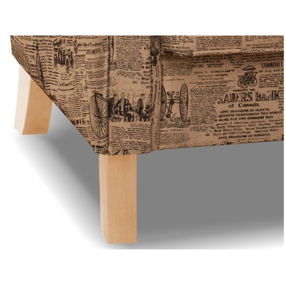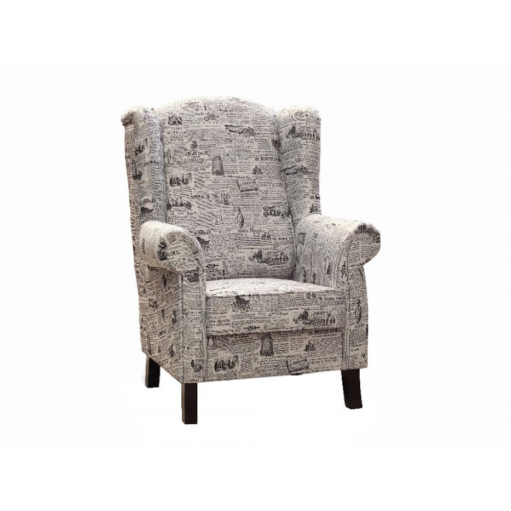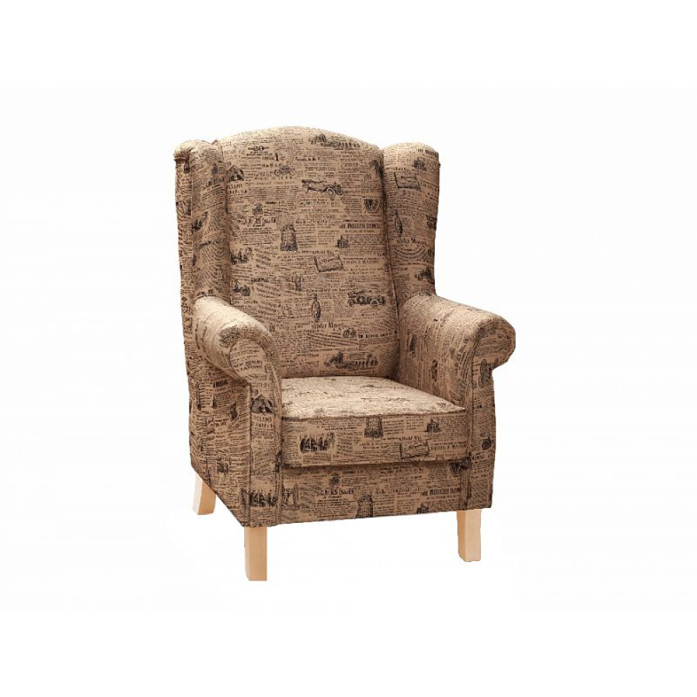 Křeslo je čalouněno látkou . Nožky jsou v přírodní barvě dřeva buk.