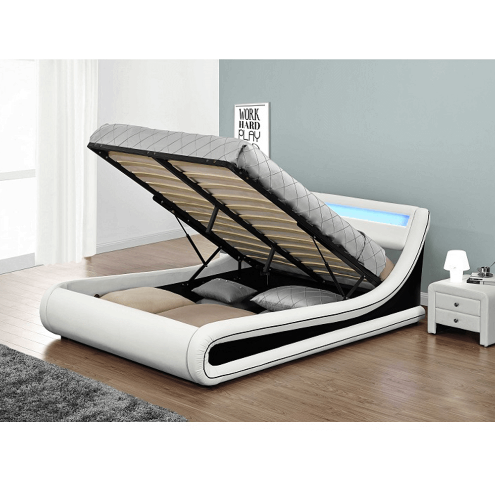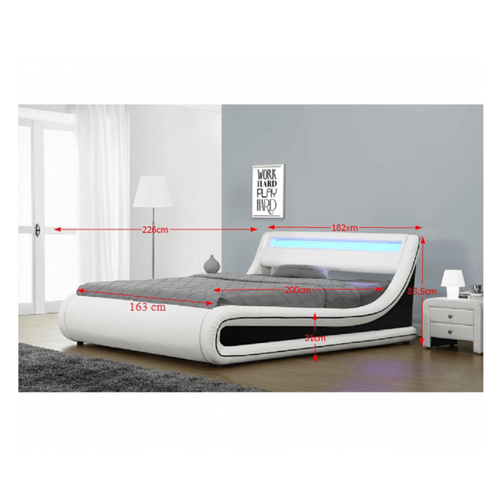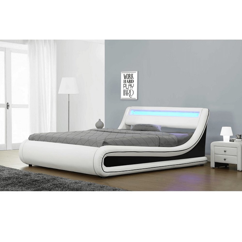 Manželská postel s RGB LED osvetlením, bíla/cerná, 160x200, MANILA NEW