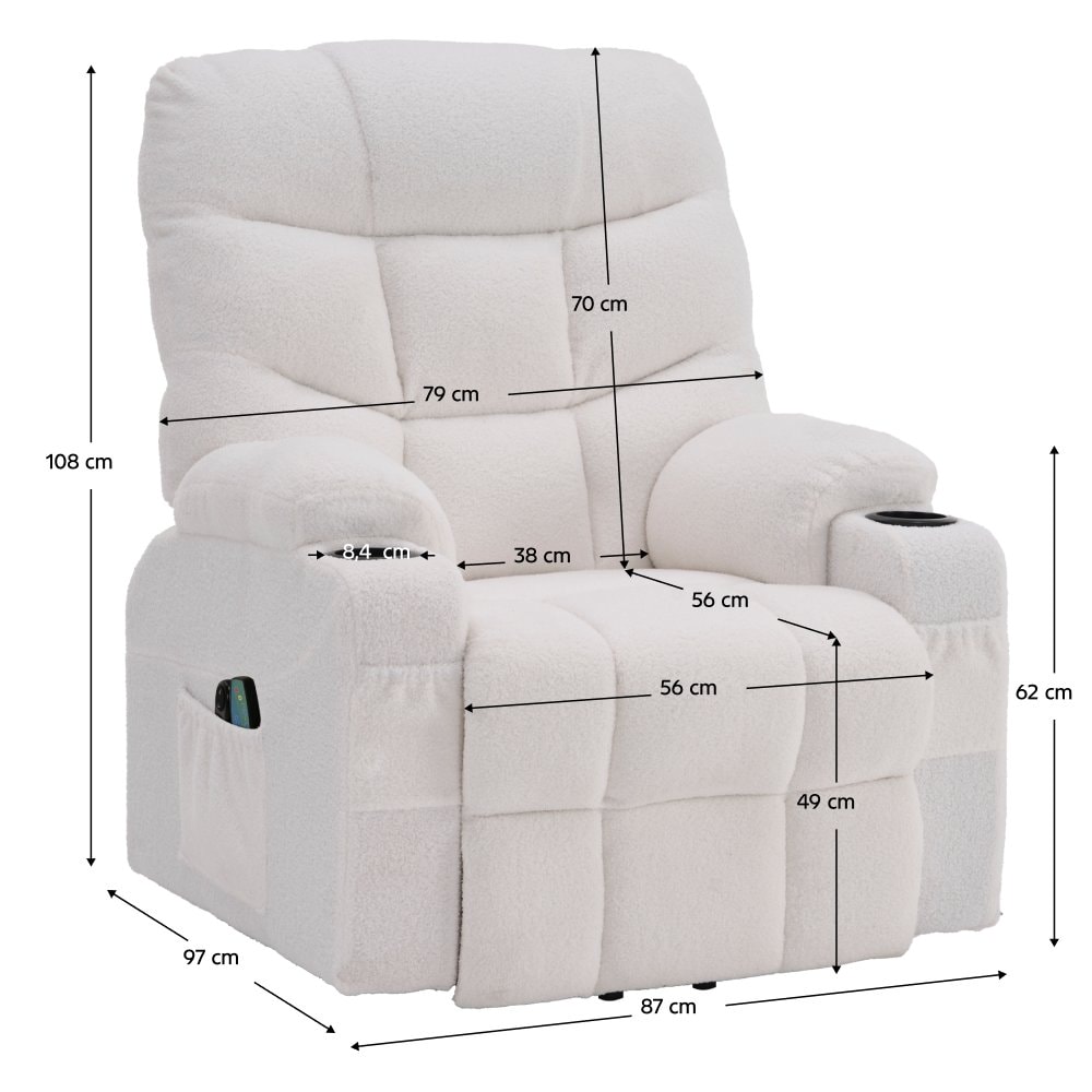 Toto křeslo poskytuje ten nejvyšší komfort a je skvělou volbou pro každého, kdo hledá pohodlné a funkční místo k odpočinku. Křeslo HUDSON si vás získá nejen svým moderním designem, ale také svými praktickými vlastnostmi. Disponuje funkcí elektrického zvedání, která potěší zejména seniory, protože usnadňuje vstávání a sedání, čímž zvyšuje bezpečnost a pohodlí. Pomocí mechanismu můžete vysunout podnož a sklopit opěradlo, čímž si nastavíte křeslo do relaxační polohy. Navíc je obohaceno o úložný prostor v podobě dvou držáků a bočních kapes, do kterých můžete uložit dálkový ovladač, noviny nebo sklenici, takže budete mít vše potřebné vždy po ruce. Určitě oceníte i masážní funkci, která je vybavena šesti vibračními body, které poskytují masáž pro vaše unavená záda. Masážní funkci si snadno nastavíte pomocí ovladače, kde můžete regulovat frekvenci vibrací až v osmi masážních metodách. Masážní funkce má tři úrovně intenzity a můžete si ji nastavit v časovém rozpětí 15–30 minut podle vaší potřeby. Nechte se hýčkat masáží a užívejte si maximální komfort a relaxaci, kterou vám polohovatelné masážní křeslo HUDSON nabízí. Dopřejte si to nejlepší pro své tělo a mysl!