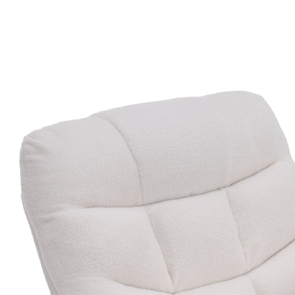 Materiál: ocel/látka Bouclé Oděruodolnost textilie podle testu Martindale: 45 000 oděrů Výplň: pěna s vysokou hustotou 240D Barva: bílá Rozměry (ŠxHxV): 87x97-155x80-108 cm Výška sedu: 49 cm Hloubka sedu: 56 cm Šířka sedu: 56 cm Šířka zad: 79 cm Výška zádové opěrky: 70 cm Nosnost: 150 kg Polohovací…